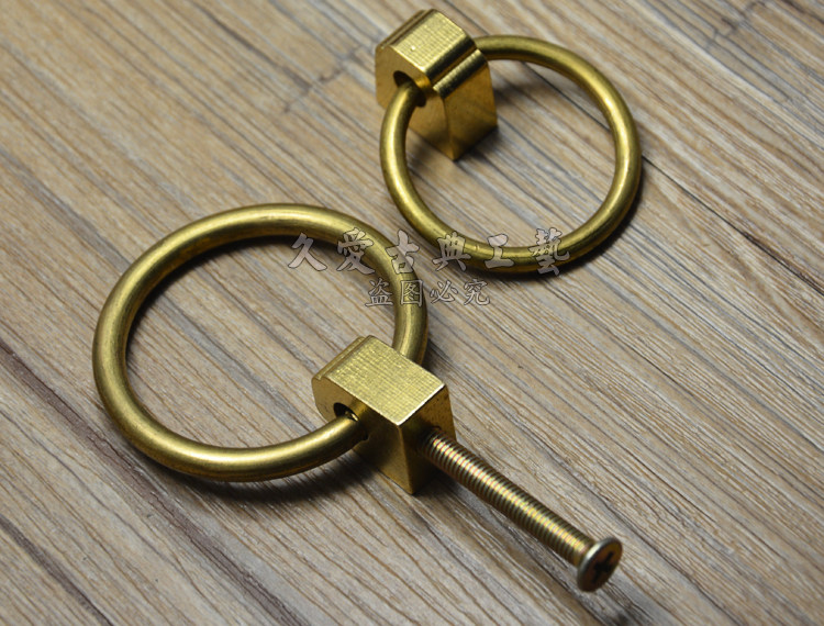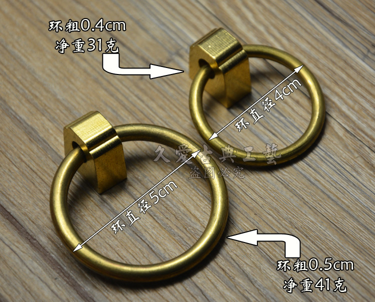 📚 铜拉环中式仿古黄铜简约衣柜拉手圆环圆圈铜环门窗抽屉中药柜把手