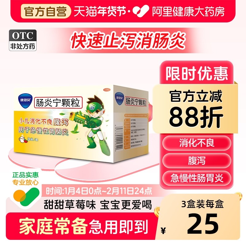 📚 康恩贝肠炎宁颗粒儿童中暑拉肚子药止泻药腹泻腹胀肠胃炎调理肠胃