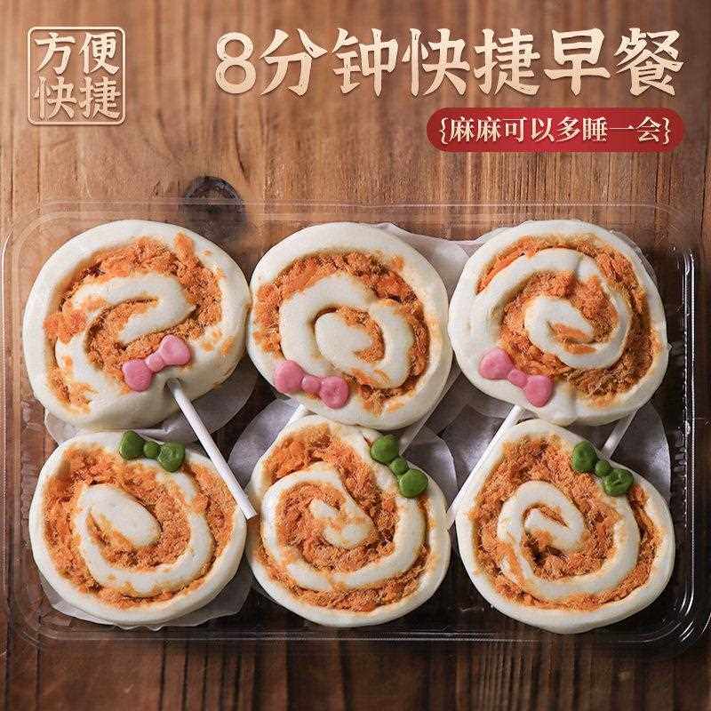 📚 肉松花卷儿带馅早餐手工包子馒头儿童营养食品速食冷冻半成品