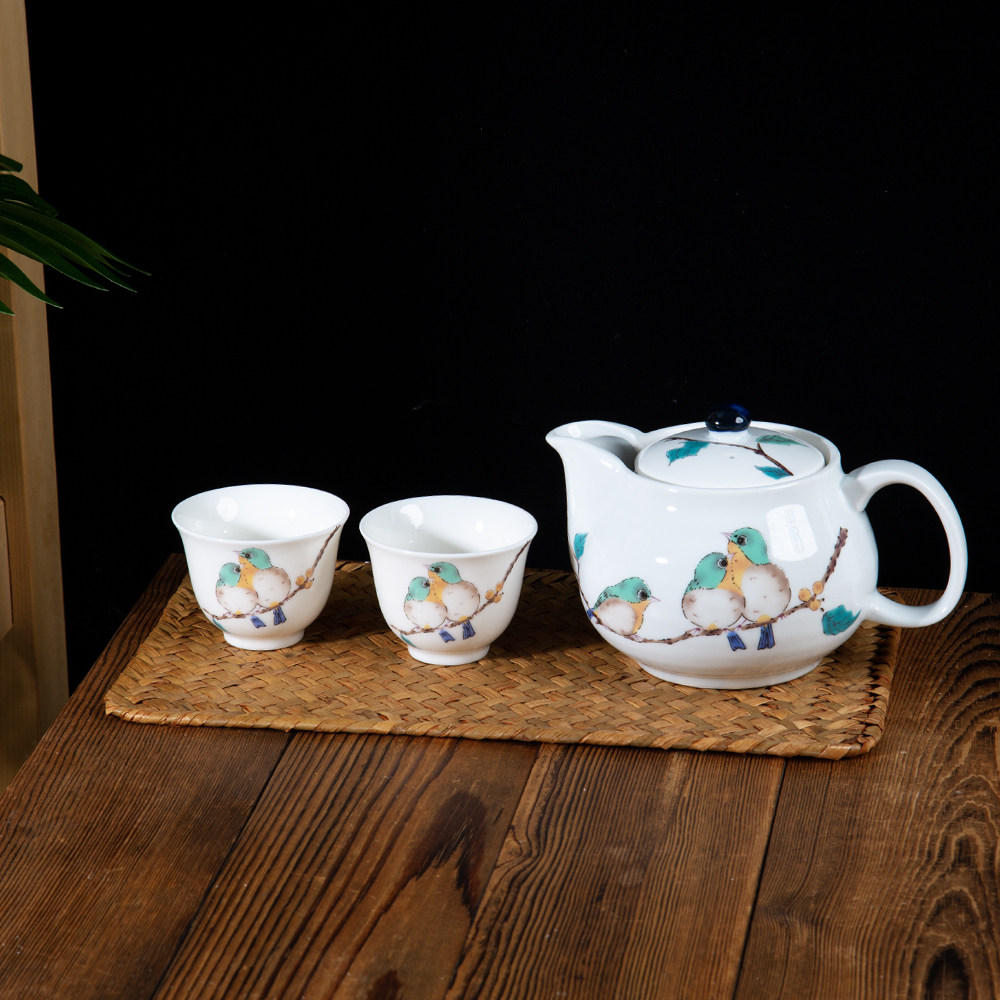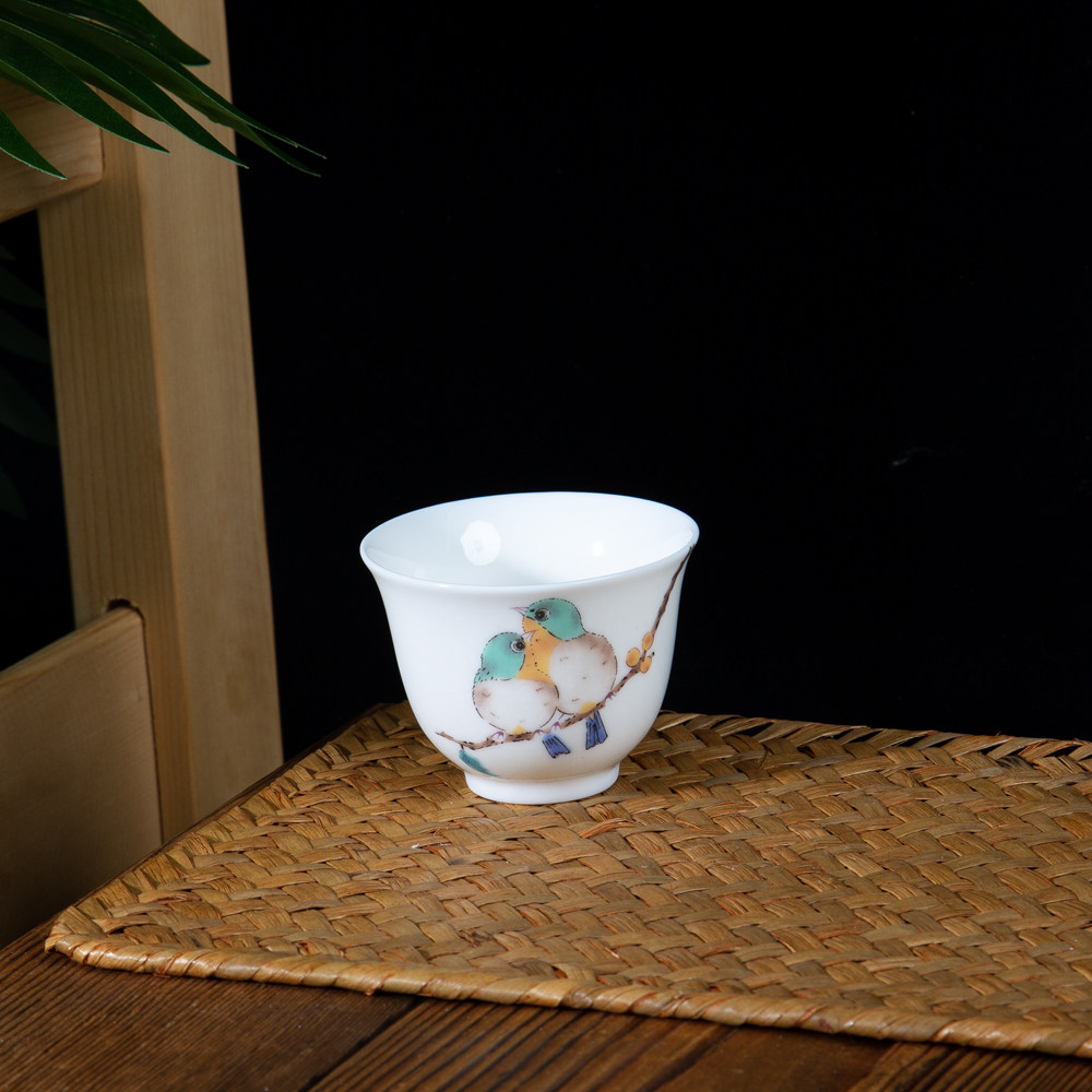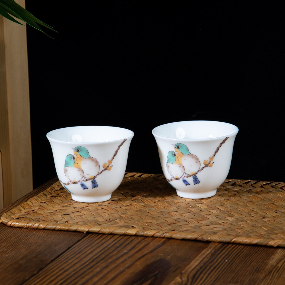 📚 日本进口全新九谷烧青郊绣眼鸟陶瓷日式酒杯茶杯茶具水杯品茗杯