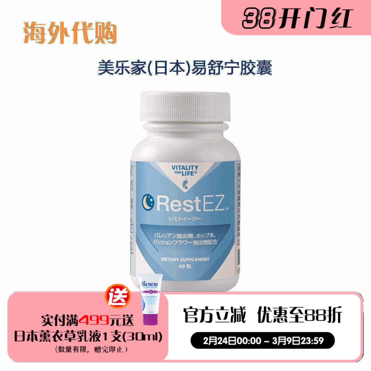 68¥ HU591 JwsBUKzq8rj¥ https://m.tb.cn/h.7AywpXU 美乐家日本易舒宁胶囊60粒 酣畅甜蜜美梦无忧 舒缓压力 官网正品 --------------------- 【原售价】169元 【现售价】121元。