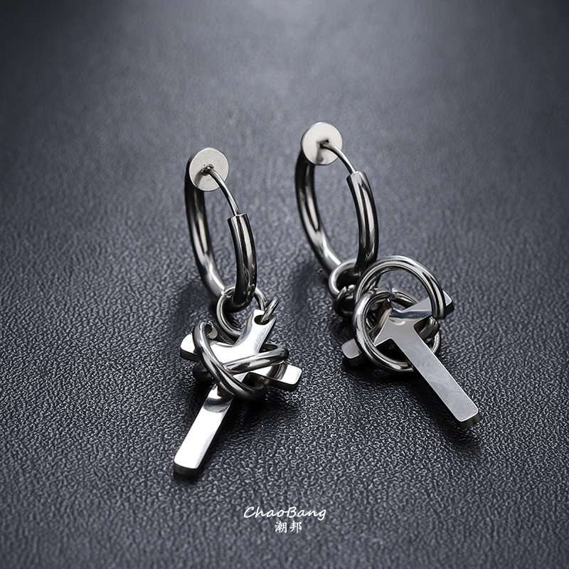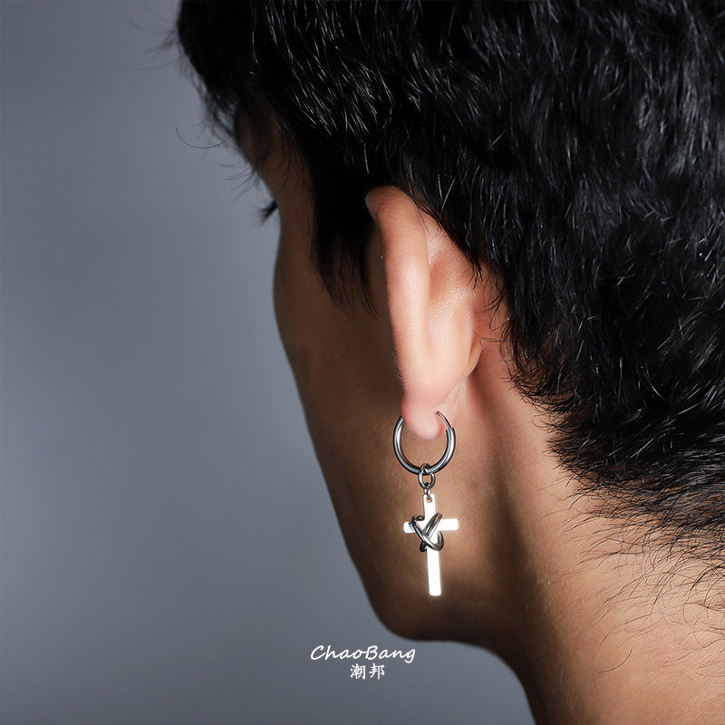 📚 钛钢缠绕十字架无耳洞耳夹男个性百搭耳环高级感不掉色时尚饰品女
