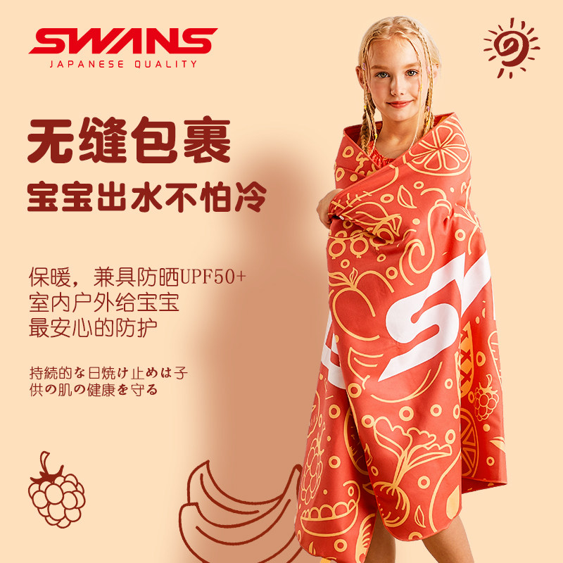 📚 swans儿童游泳浴巾速干吸水巾女童运动浴袍毛巾男孩专用沙滩斗篷