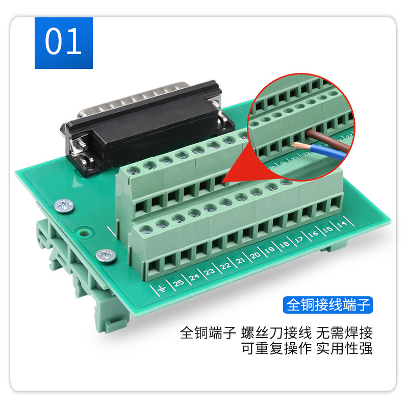 📚 DB25免焊接头并口中继转接线端子台排板公母头C45导轨PCB支架伺服