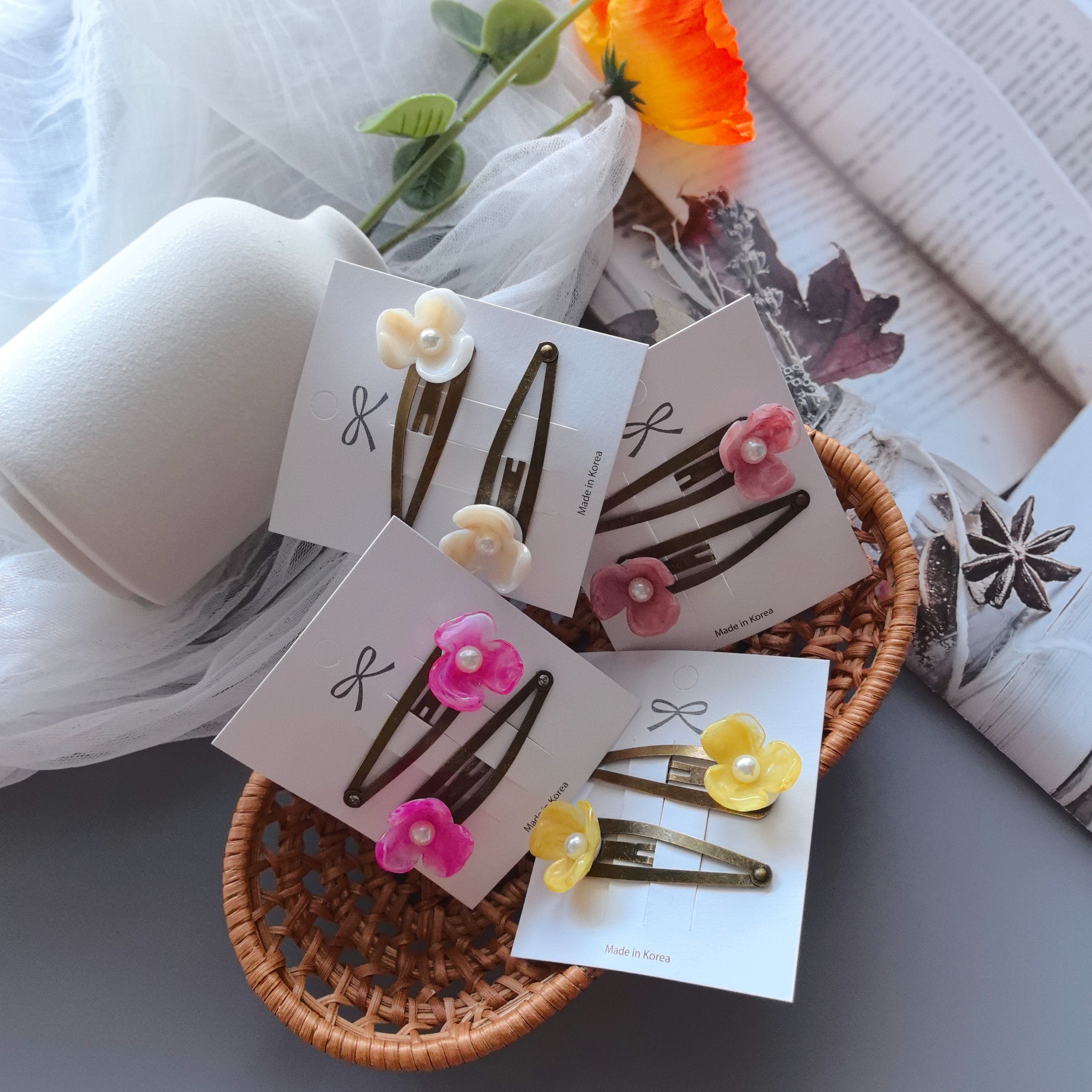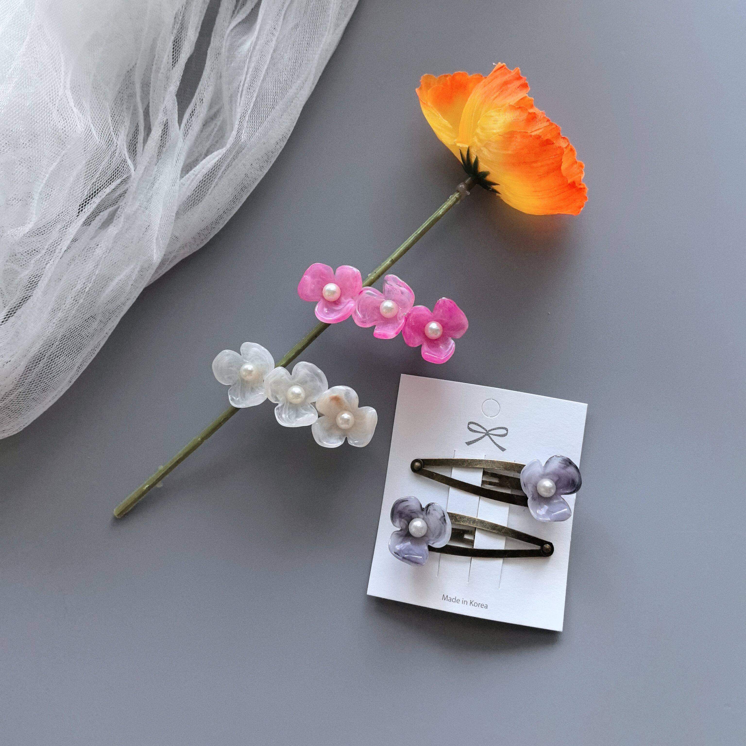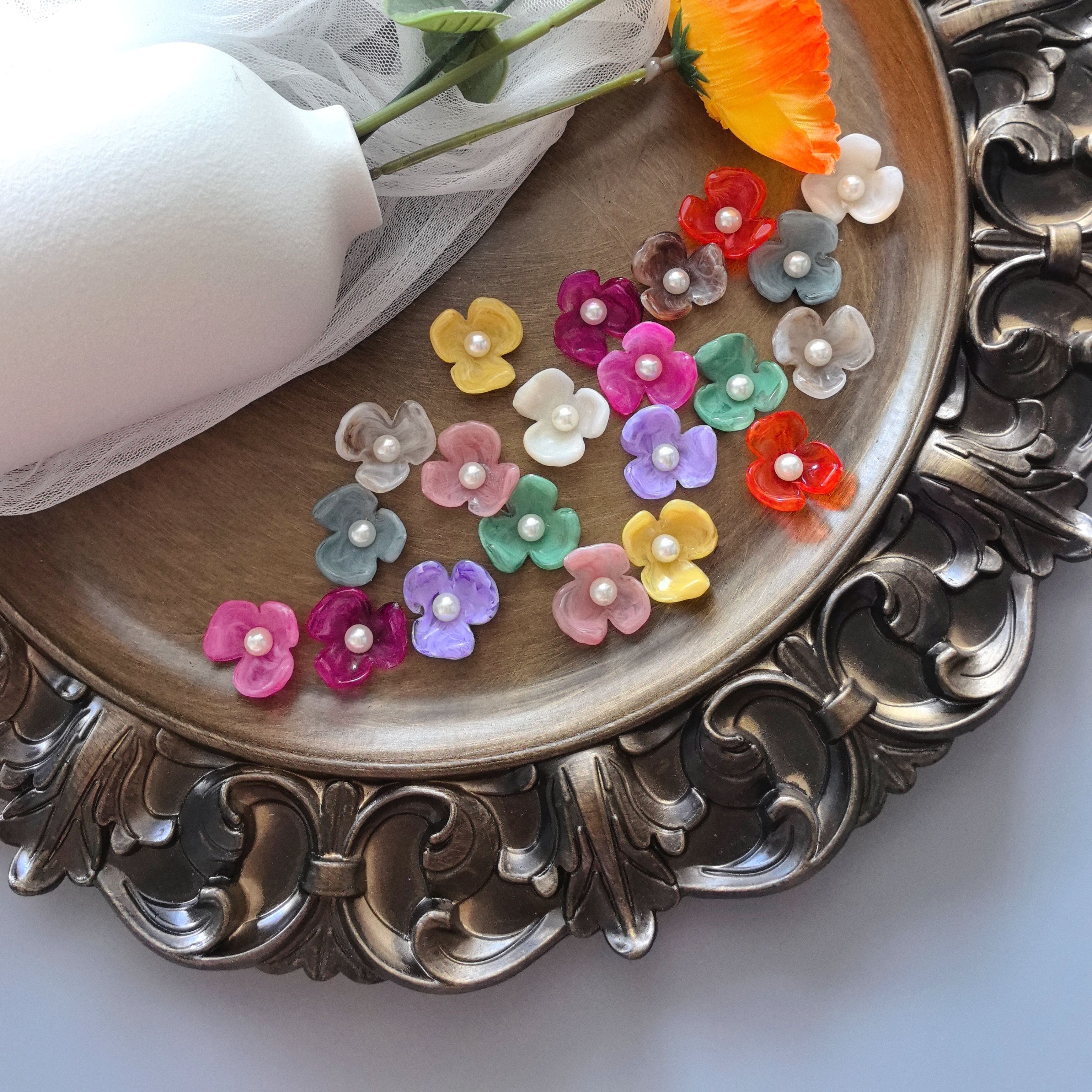 📚 韩国进口ins流行三瓣人造珍珠树脂小花手工diy儿童饰品边夹配件