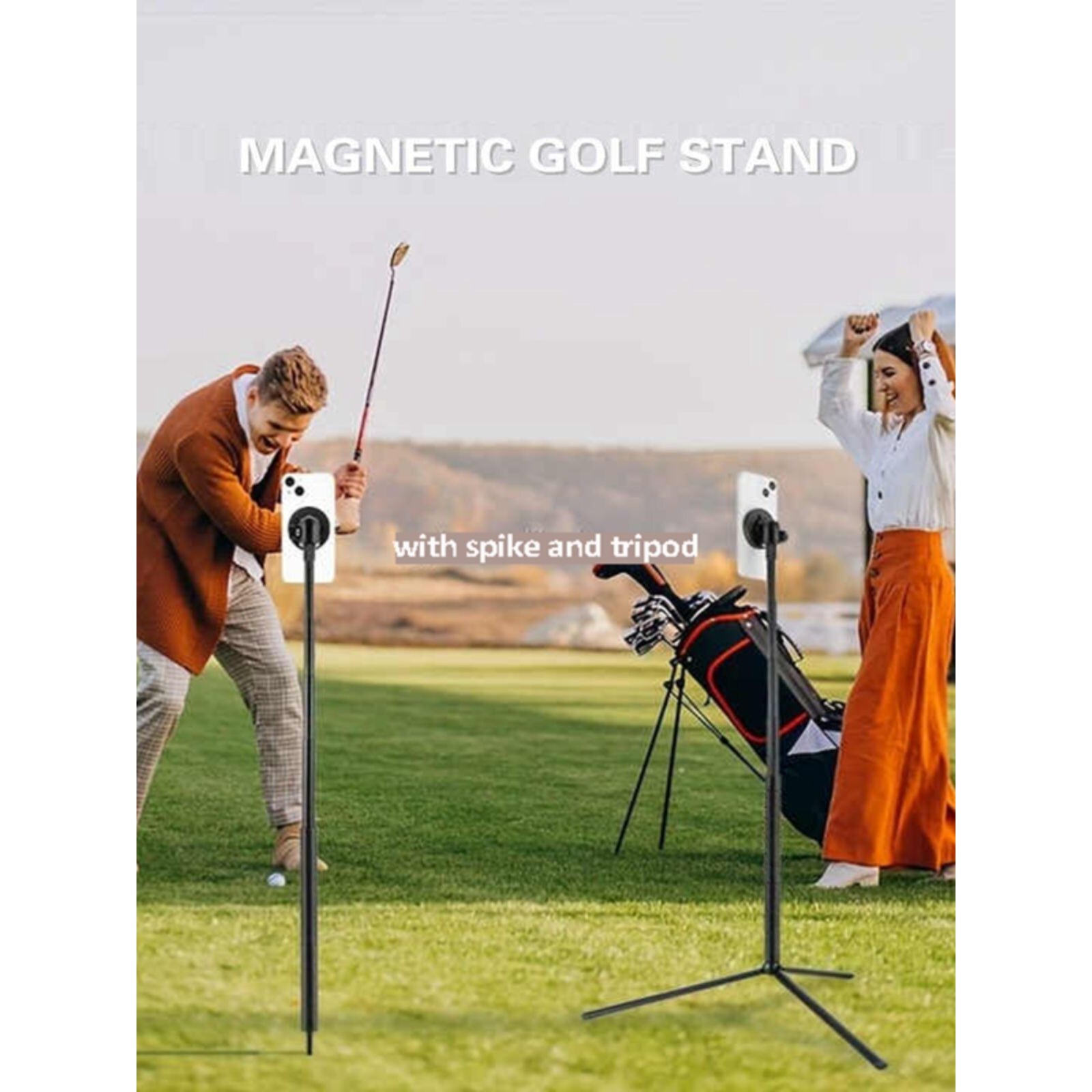 📚 Magnetic Golf Phone Holder Spike Tripod Golfer Selfie Stick