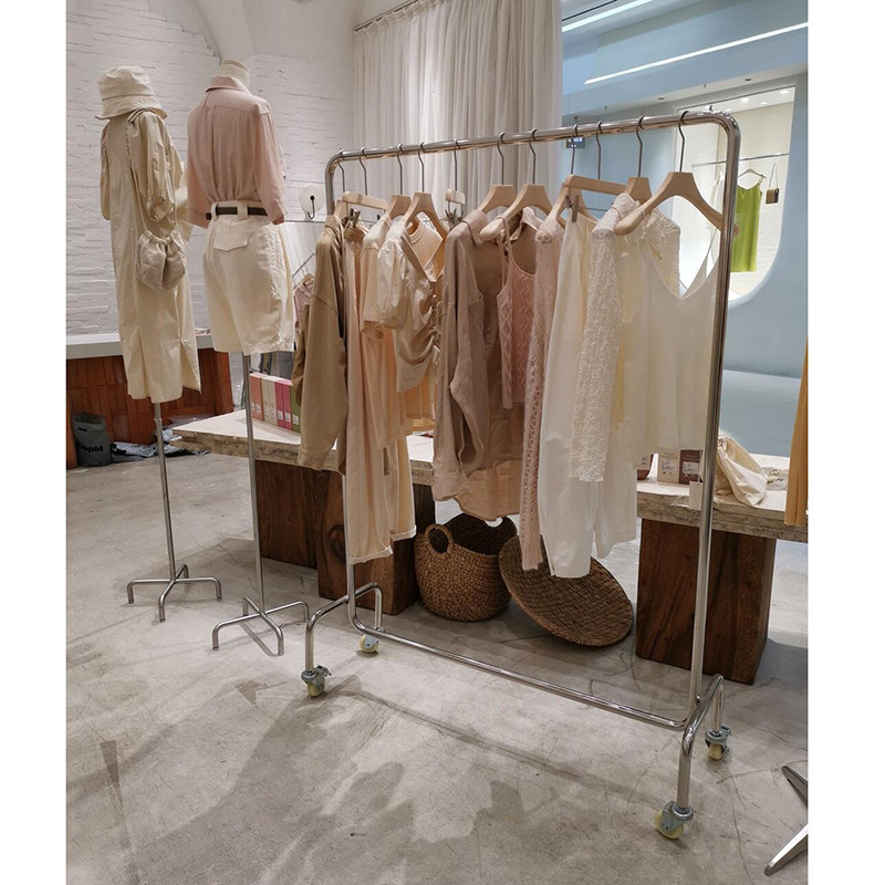 📚 服装店展示架不锈钢拉丝银挂衣杆女装店落地架侧挂中岛带轮衣架子