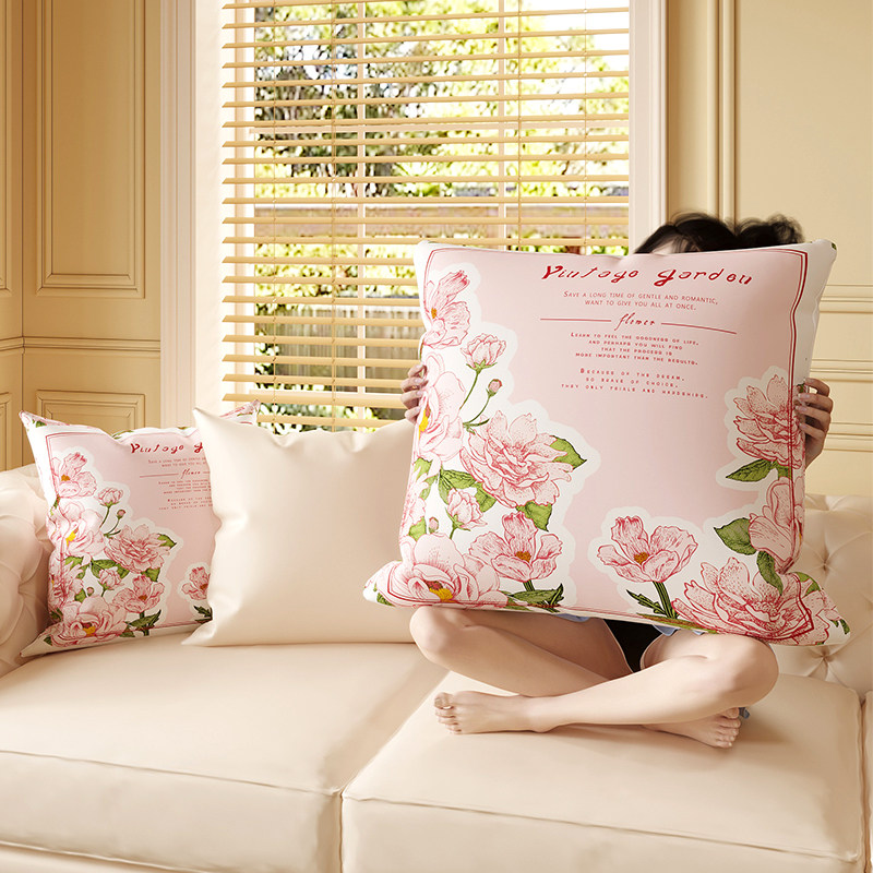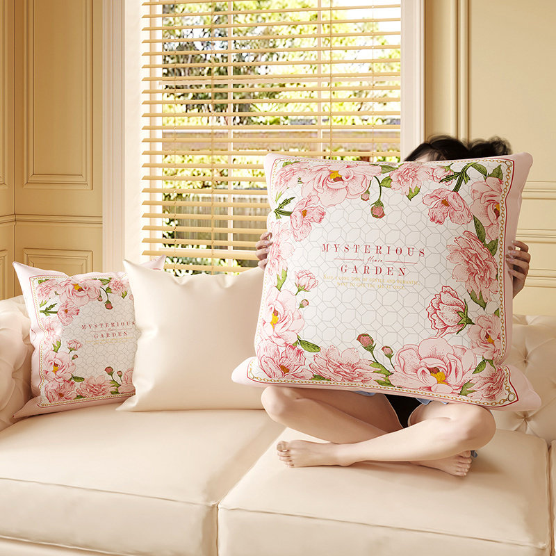 📚 新款亲肤细腻天鹅绒氛围感大抱枕轻奢花卉沙发靠枕正方形大号靠垫