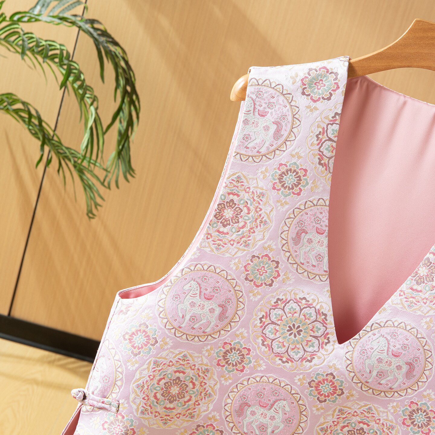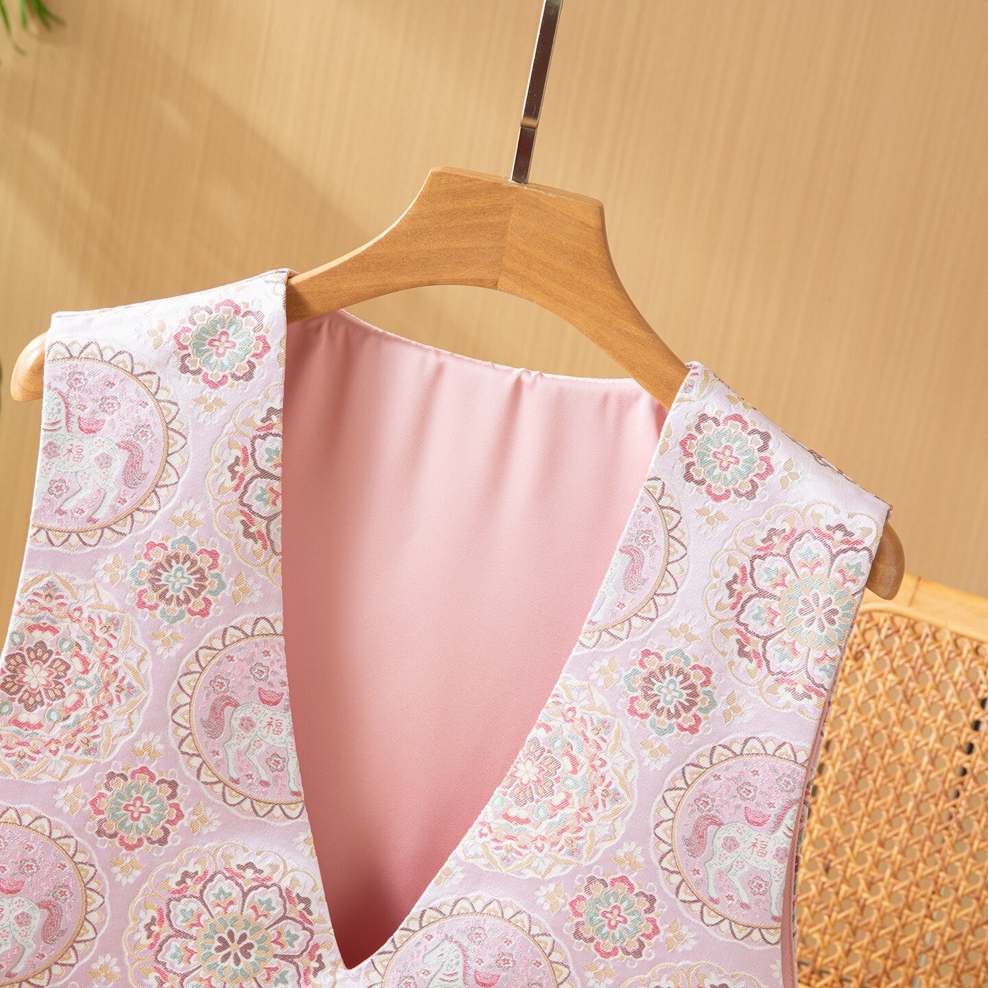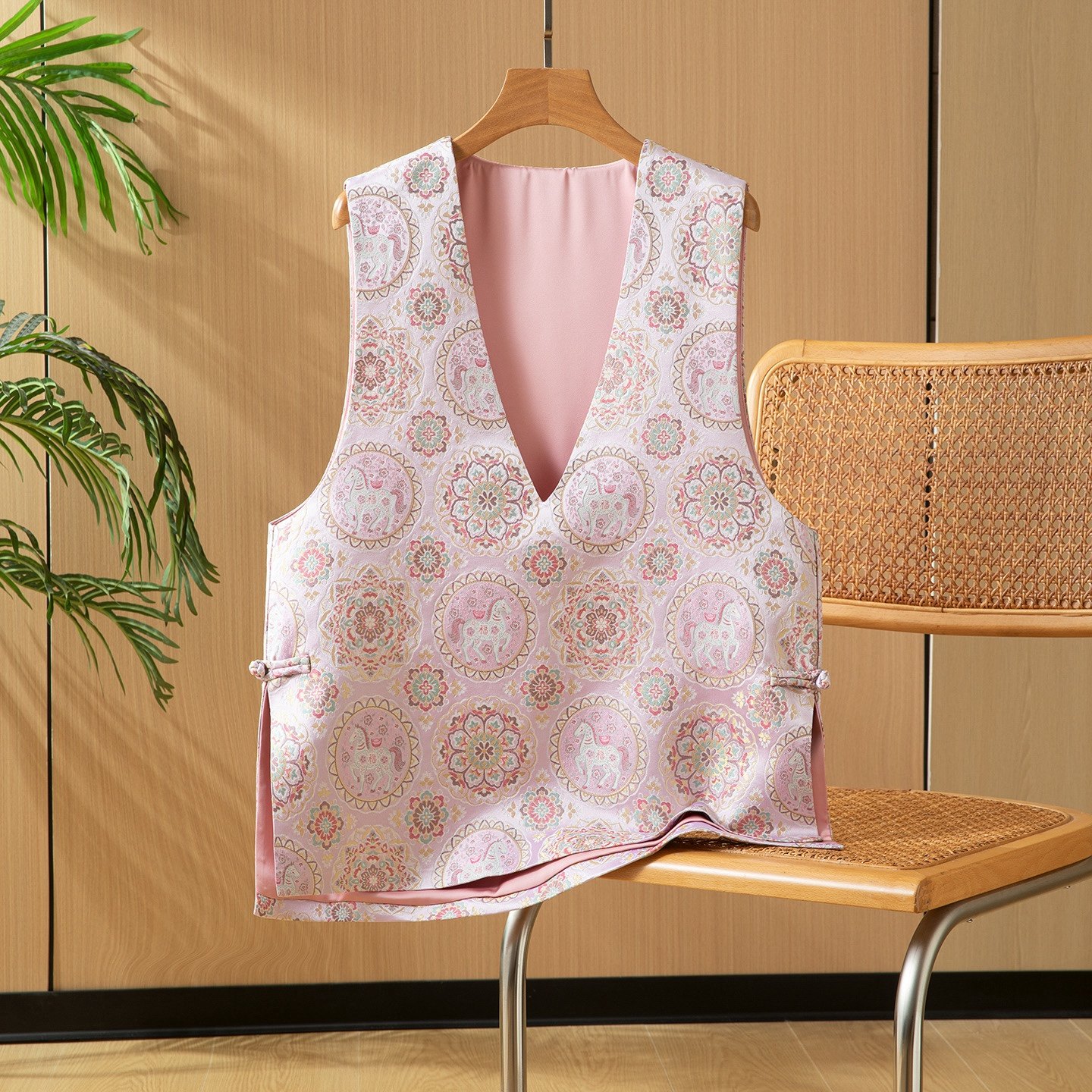 📚 马上有福桑蚕丝宋锦深V外搭马甲女春新中式气质无袖背心外套上衣