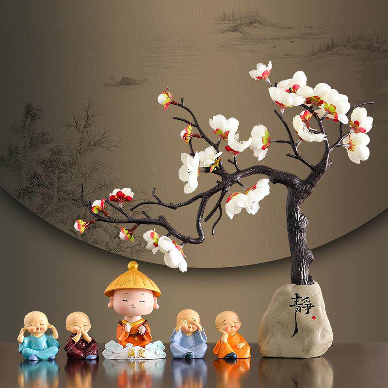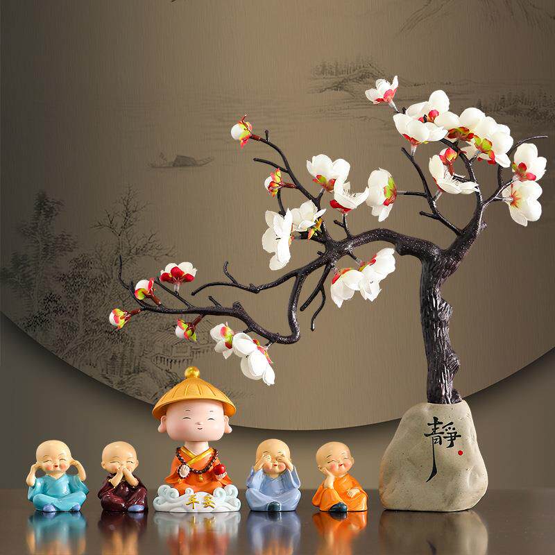 📚 蕊杰创意腊梅中式四不和尚摆件家居装饰品工艺品客厅书房摆设饰品