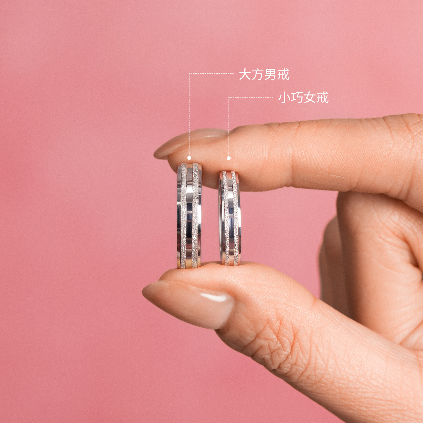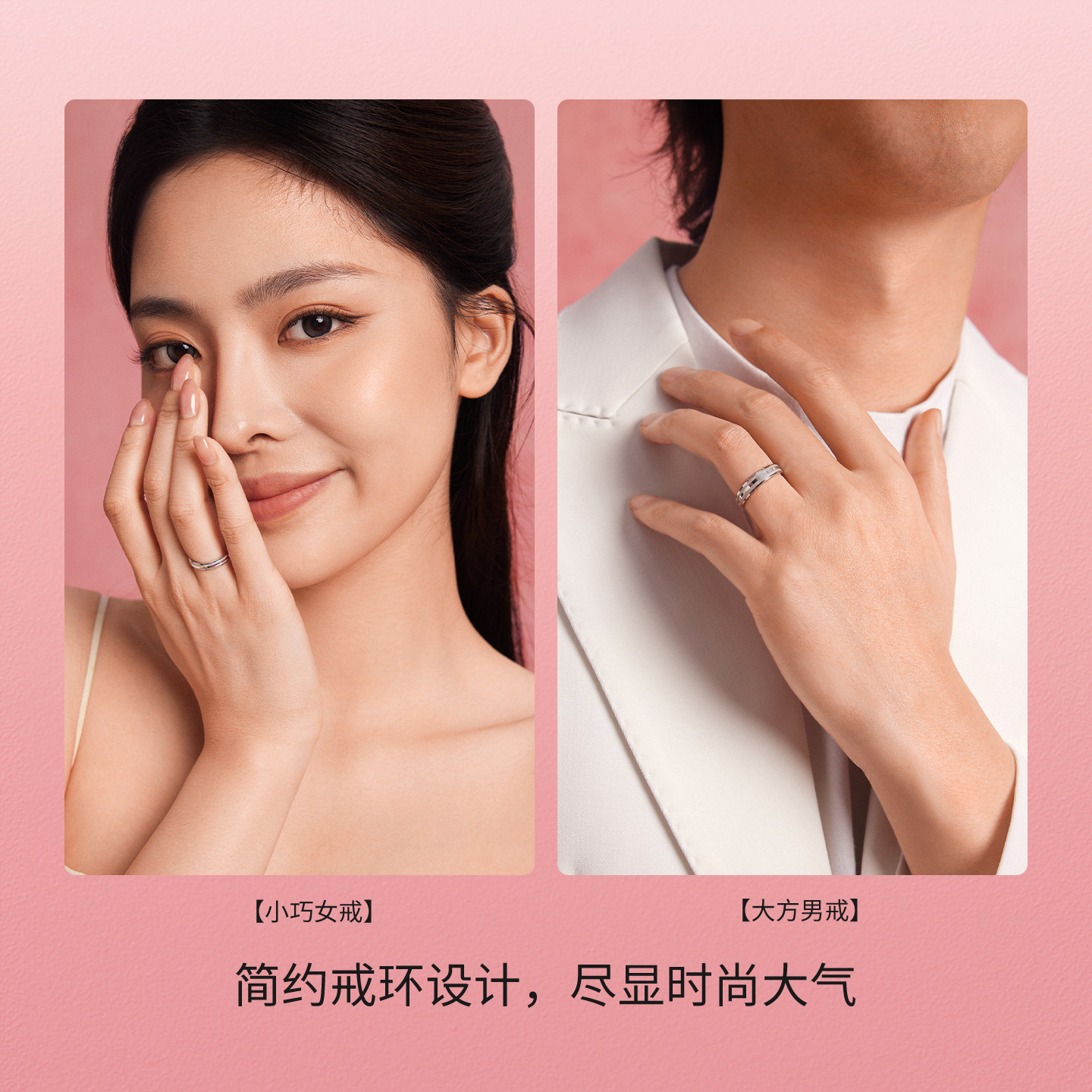 📚 周六福铂金戒指情侣对戒男女结婚素圈pt950白金指环情人节礼物女