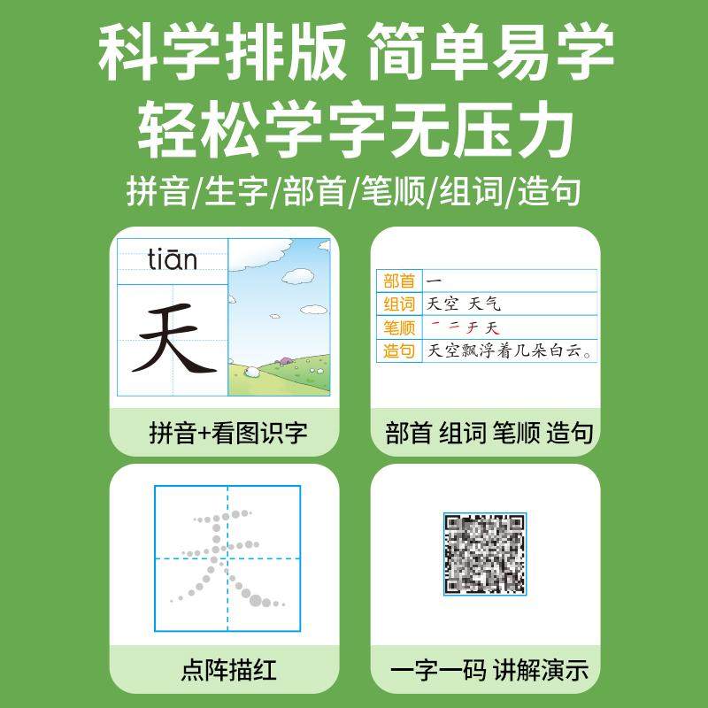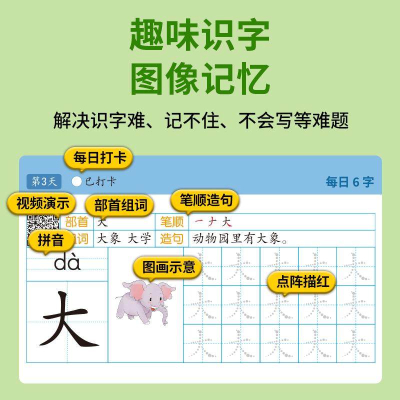 📚 正字源每日6字幼儿园描红拼音汉字汉字笔顺组词3-6儿童练字帖识字