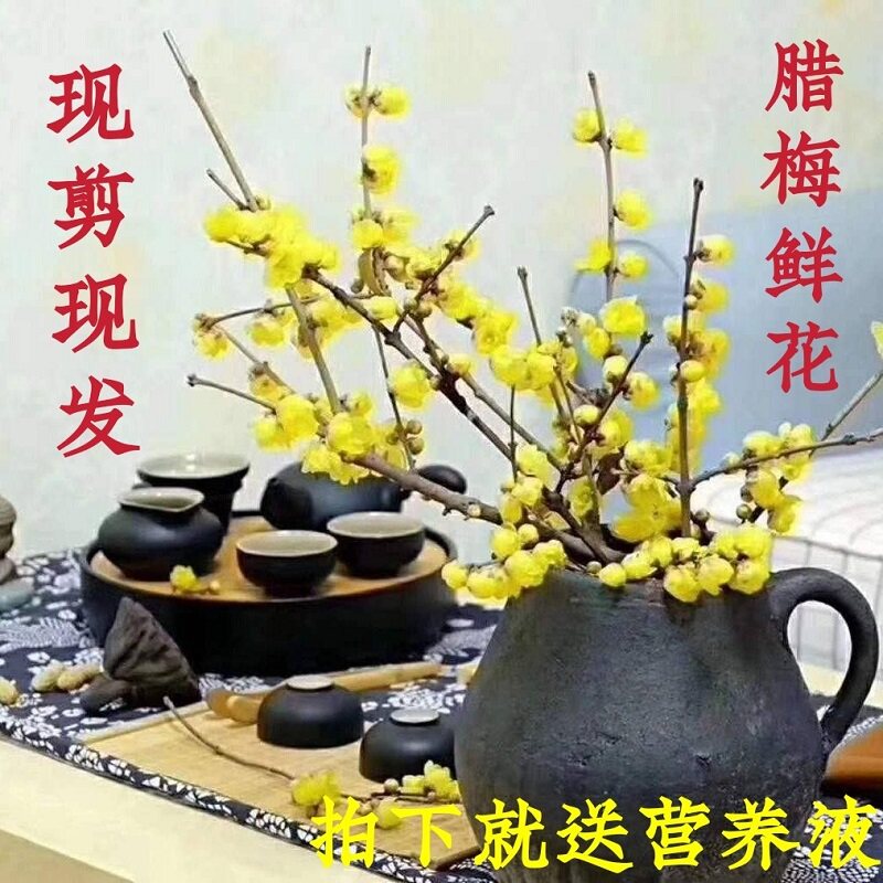 📚 鲜切花腊梅鲜花水养枝条带花苞素心梅干枝插水开真花插花年宵花卉
