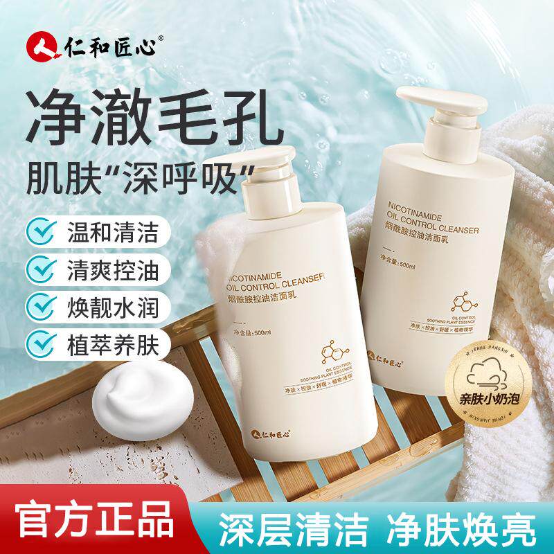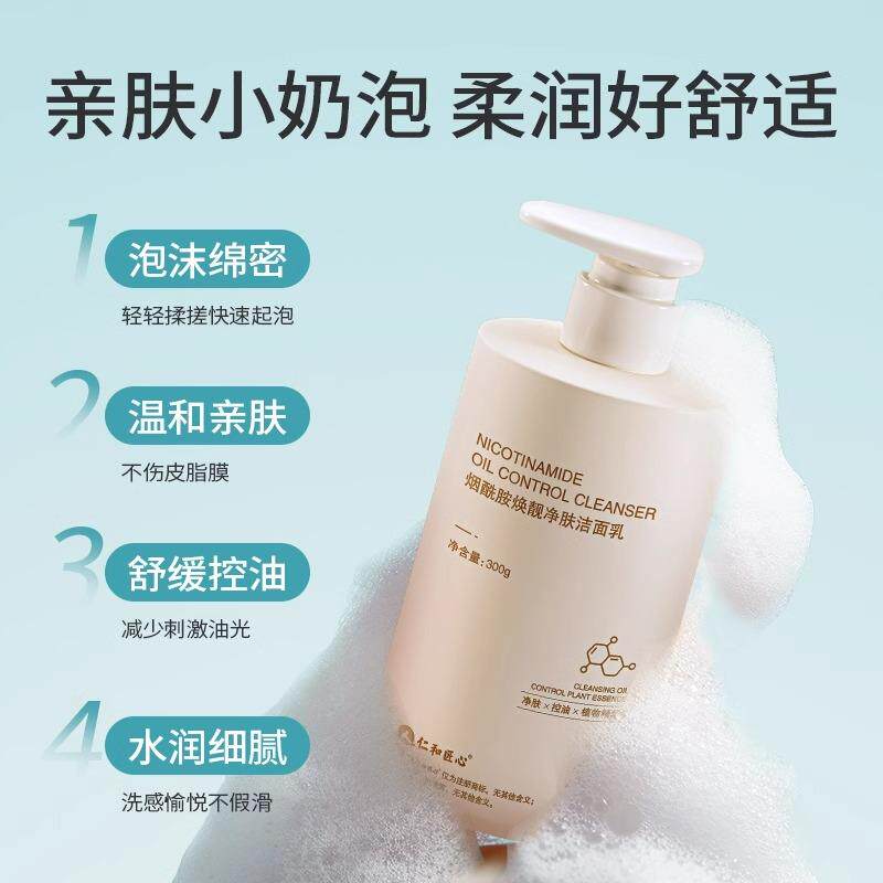 📚 仁和匠心烟酰胺洗面奶男女士专用控油除螨保湿深层清洁毛孔洁面乳