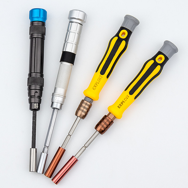 📚 开拓精密螺丝刀手柄可调自锁棘轮4mm批头铝合金小改锥起子手柄把