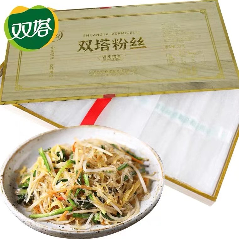 📚 双塔木盒粉丝山东龙口粉丝绿豆粉丝500g木质礼盒年货过节送礼批发