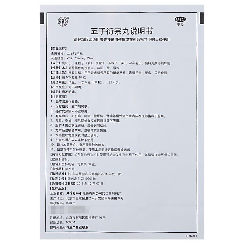 📚 同仁堂 五子衍宗丸 60g*1瓶/盒 补肾益精用于肾虚精亏所致的阳痿