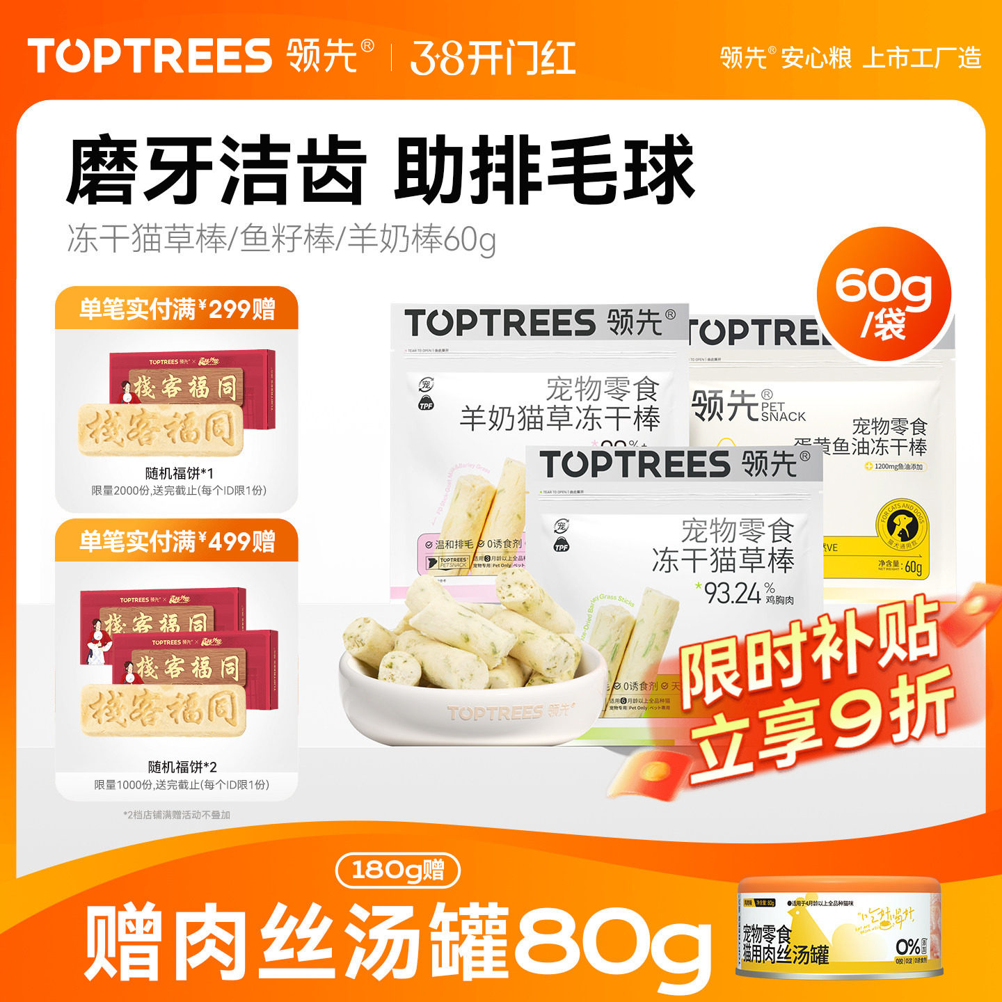 📚 领先冻干猫草棒羊奶棒宠物磨牙棒洁齿饼干成幼猫咪零食鸡肉排毛球
