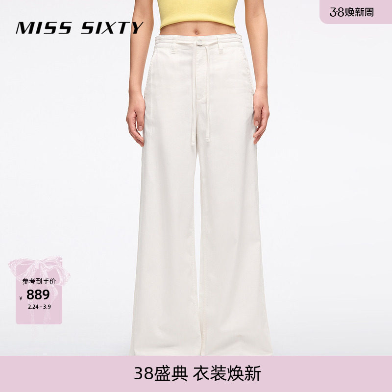 📚 Miss Sixty2025夏季新款牛仔裤女系带抽绳宽松奶白垂感阔腿裤长裤