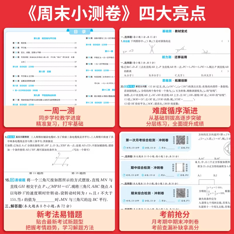 📚 2026初中一本周末小测卷七八年级下册数学人教版北师语文英语外研译林物理苏科小四门试卷全套政史地生初一二上册必刷题练习册单元