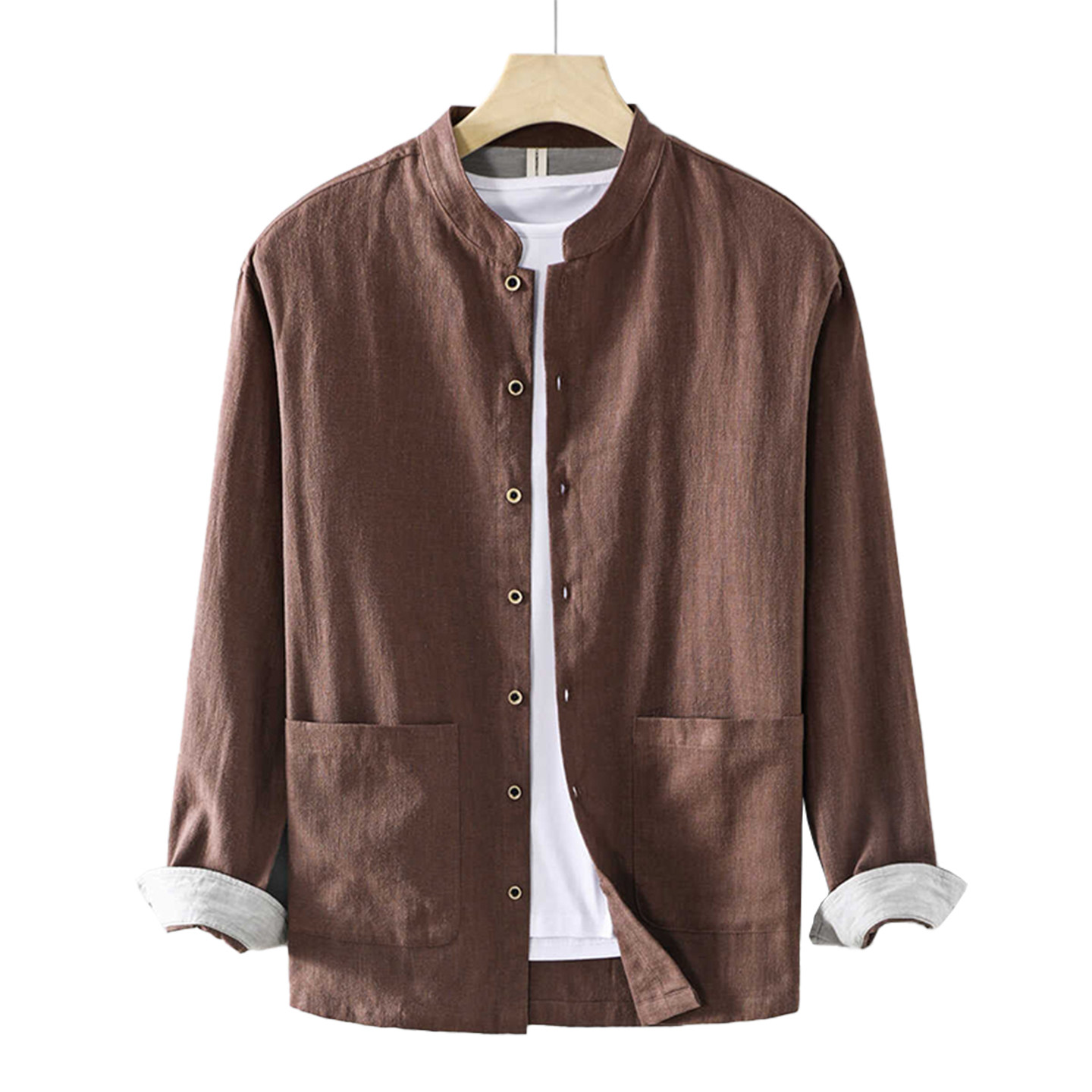 🌿一见钟情的不止是外观,更是它带来的那份独特的中式国风休闲气息。这款外套采用高品质棉麻材质,轻盈舒适,触感细腻。立领设计更是展现了男性的挺拔与大气,配上简约而不失优雅的中式国风元素,让人仿佛穿越回了那个悠然自得的时光。