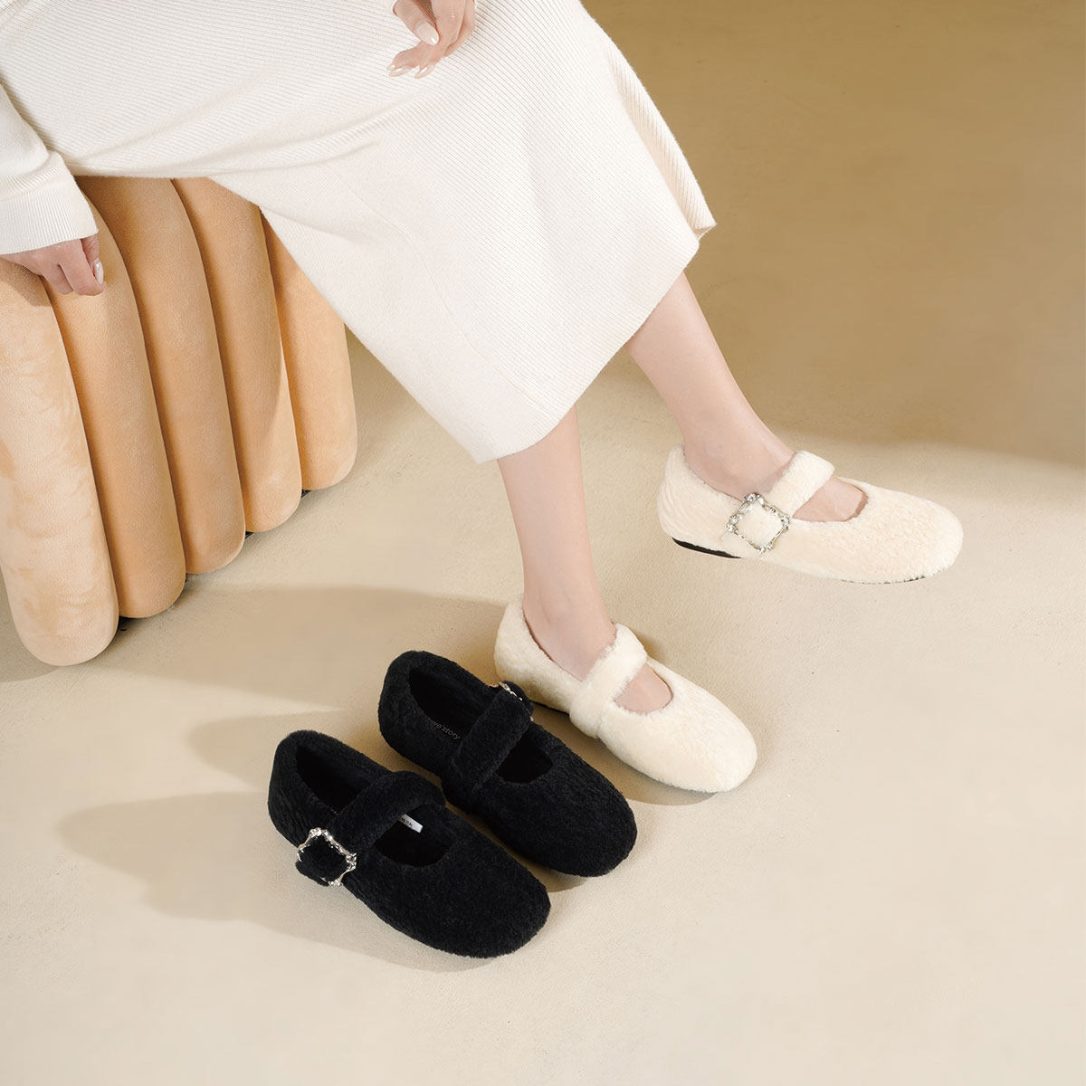 📚 westory2025冬季新款毛绒玛丽珍平底加绒保暖浅口单鞋豆豆鞋羊毛