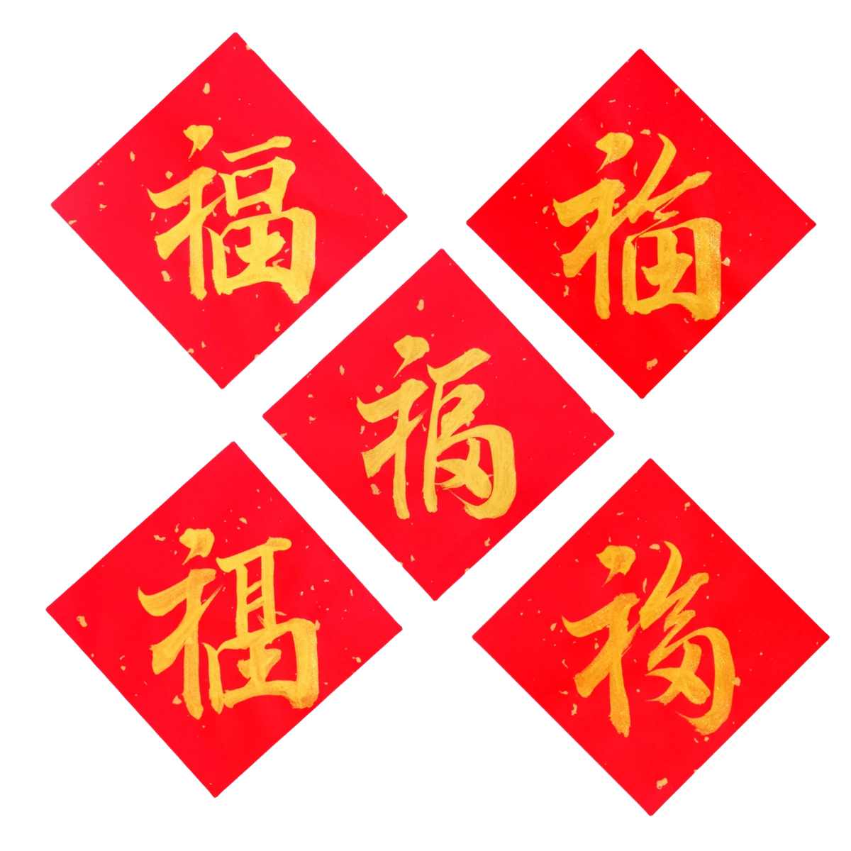 📚 古墨手写福字五福临门五个不同福字新春集福门贴福到毛笔字包邮