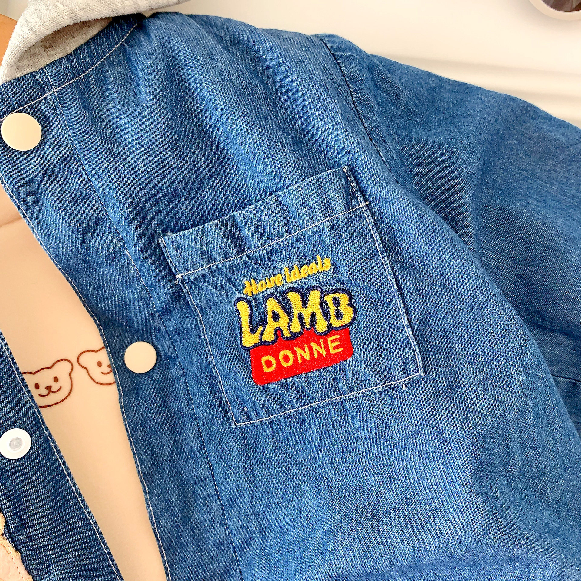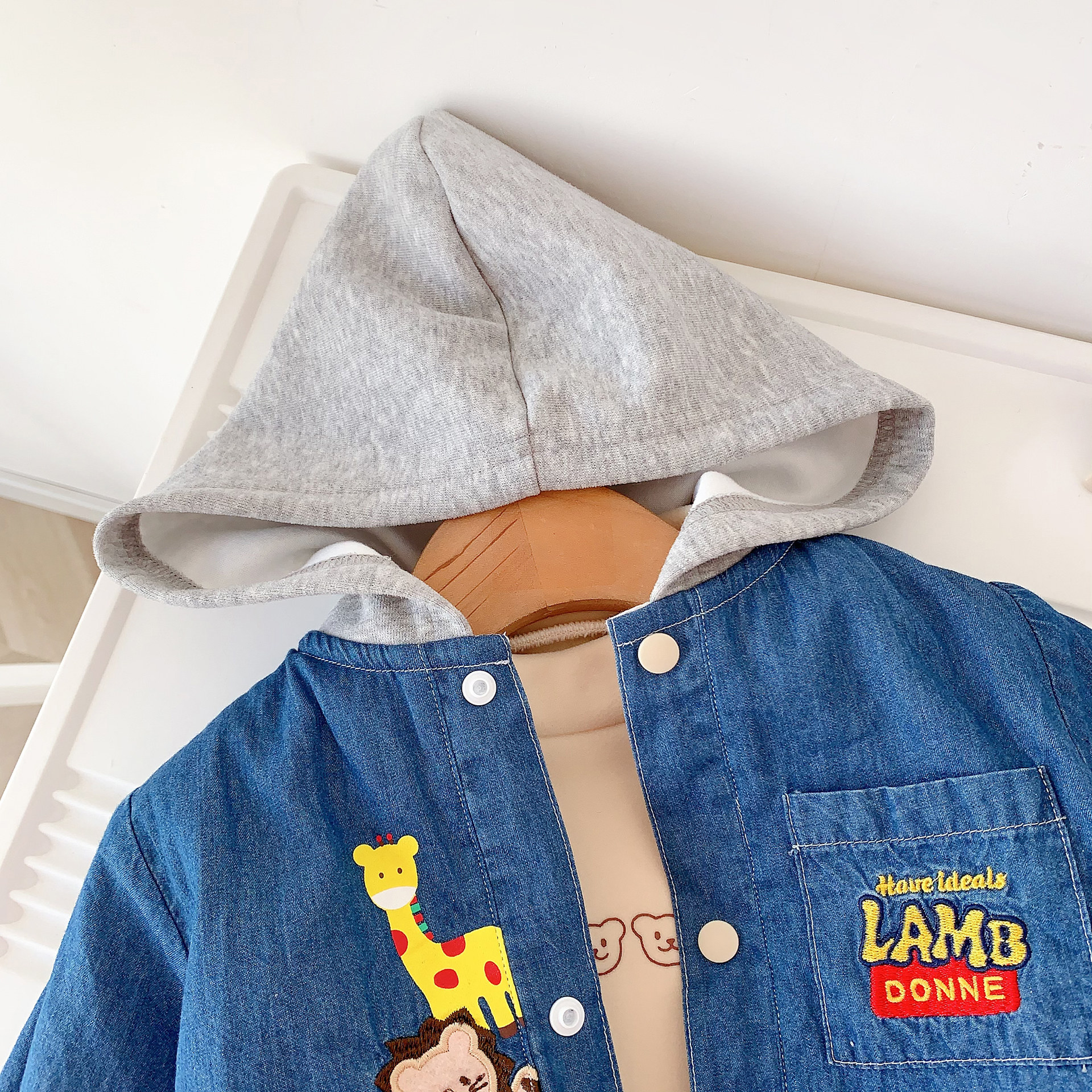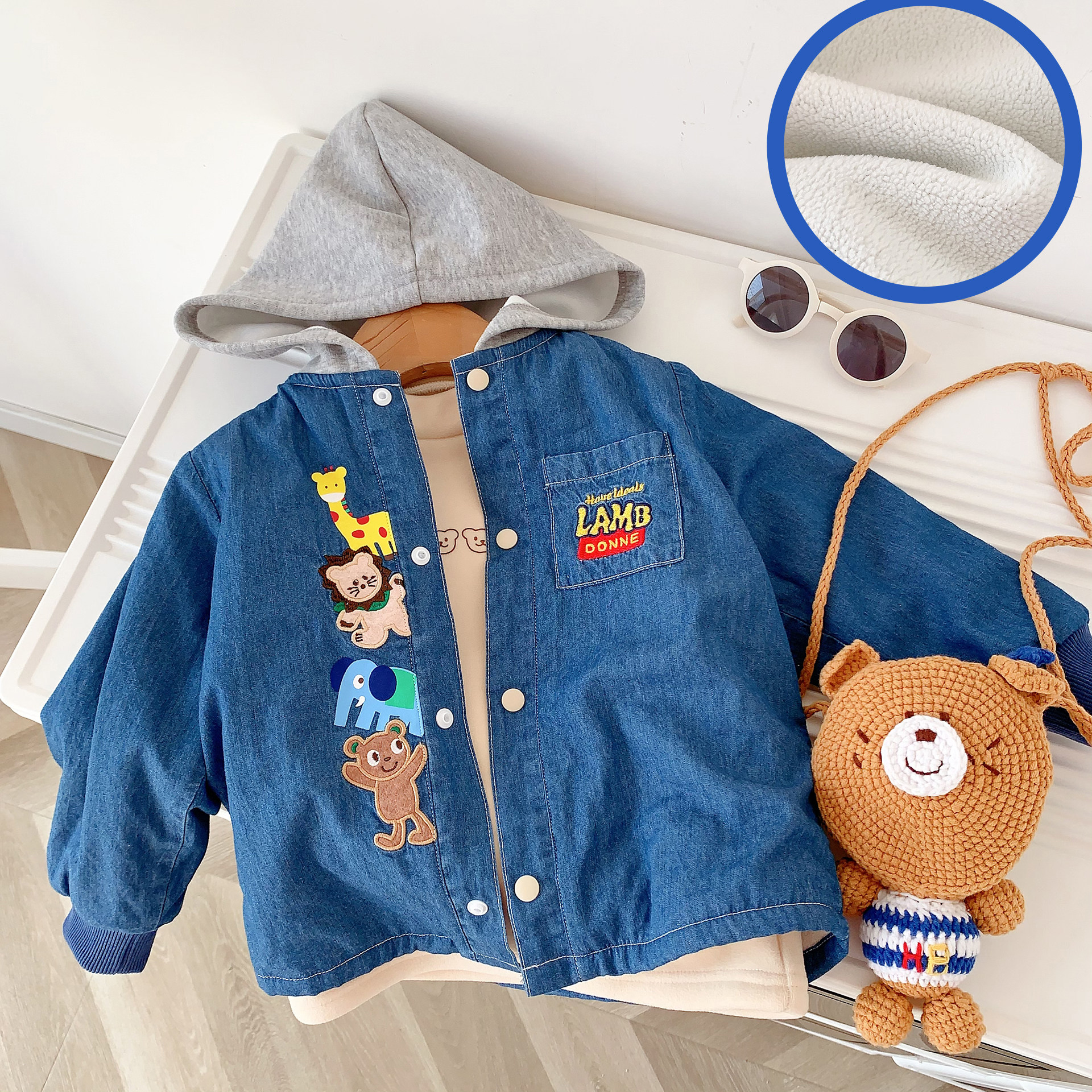 📚 儿童牛仔加绒外套25年秋款重工刺绣卡通男童连帽外套洋气女宝外套