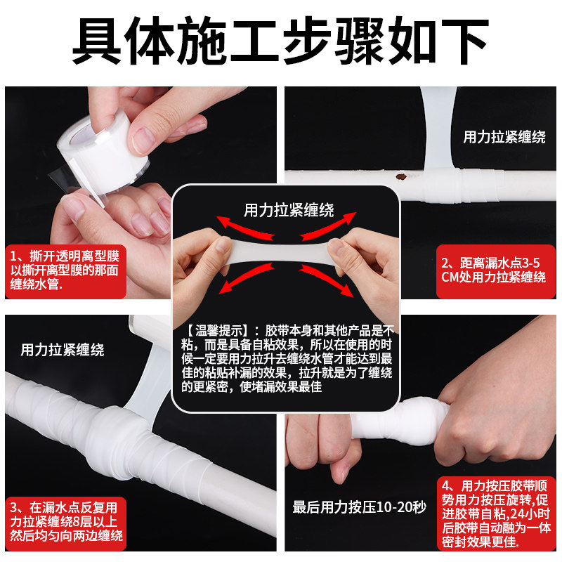 📚 防水补漏胶带pvc管道漏水补漏胶贴水管道裂缝堵漏水龙头漏水硅胶止水胶布暖气管缝隙修补神器强力自粘堵漏王