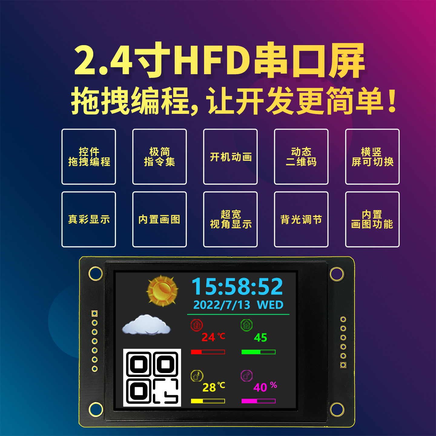 📚 尚视界HF系列UART串口屏2.4寸高清IPS工业应用仪器仪表含图片字库
