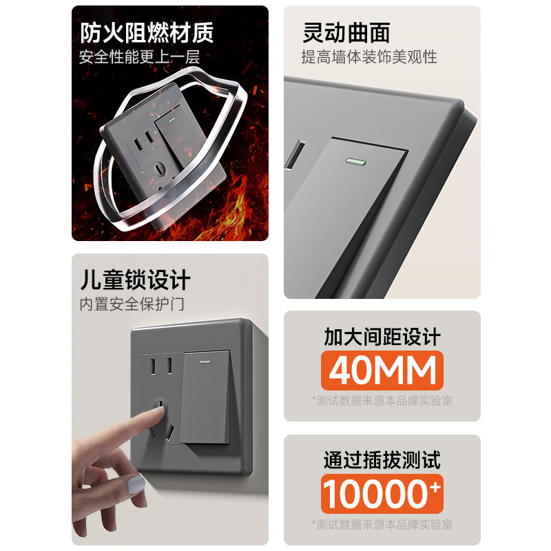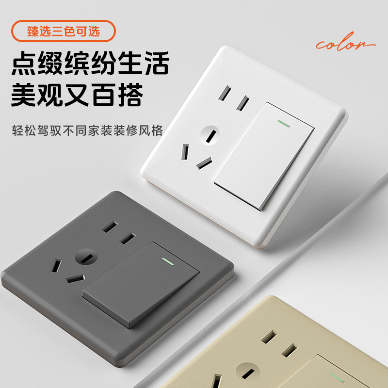 📚 86型一开多控五孔插座暗装1开5孔中途三控开关三联家用开关面板