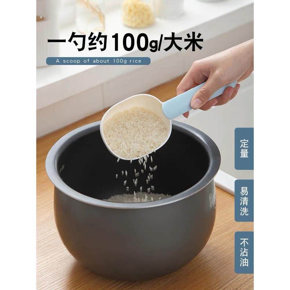 📚 舀米勺多功能挖面粉奶粉米粉勺子家用塑料长柄带夹量勺米面舀面勺