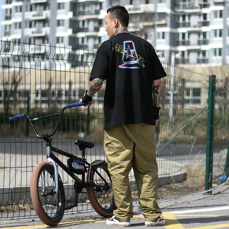 📚 来福叶店2022俱乐部短袖T恤美式西海岸滑板bmx街头小领口宽松厚