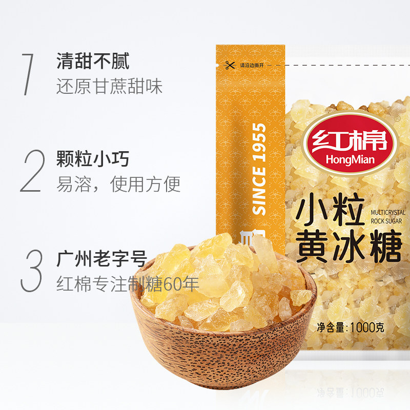 📚 【包邮】红棉一级小粒黄冰糖1kg/袋炖煮调味商用老冰糖多晶冰
