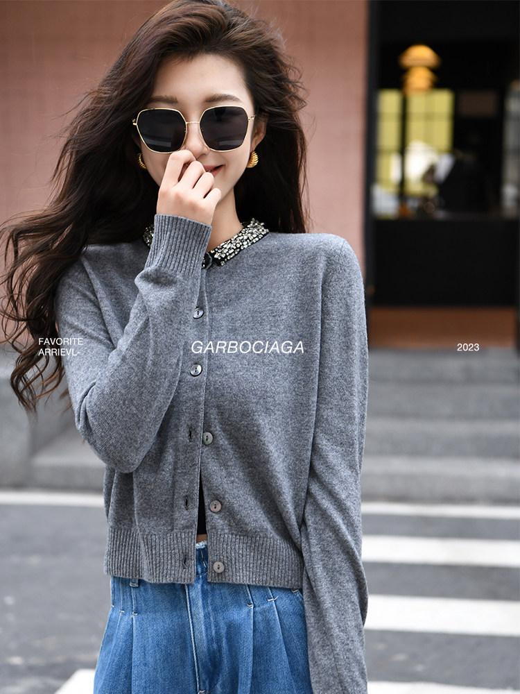 📚 Garbociaga龍喜儿 重工镶钻 新澳州26支全羊毛打底针织开衫女5018