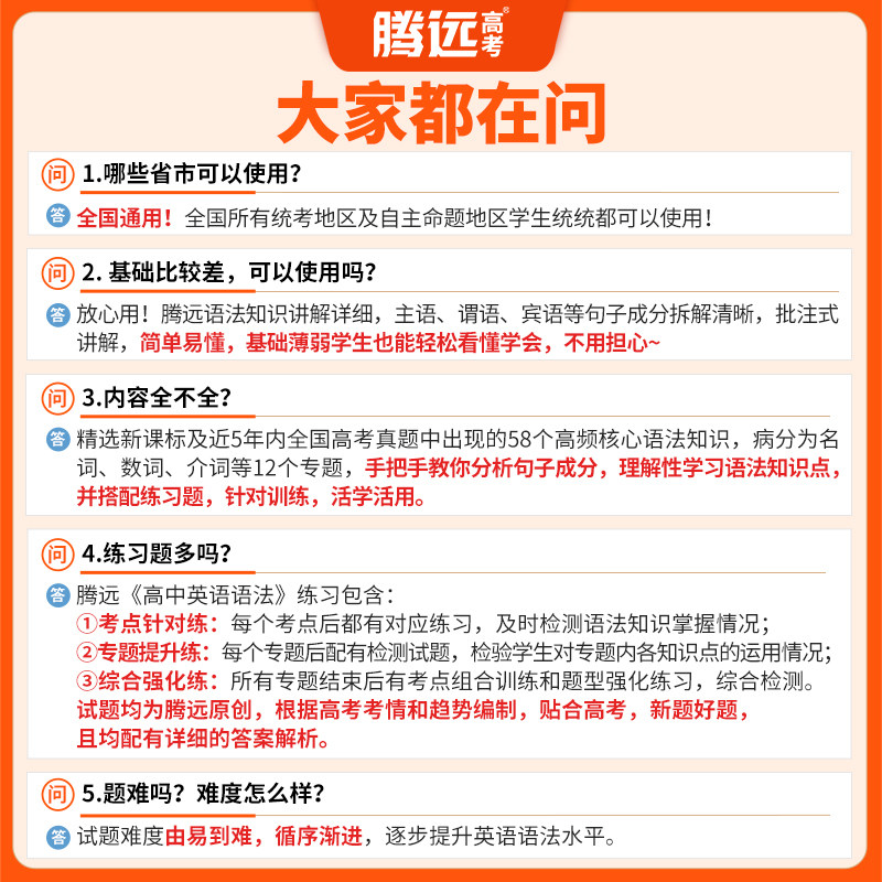 📚 高中英语语法全解2024新版腾远高考万唯解题达人语法填空专项训练高一高二高三高考英语语法阅读理解完型教辅资料高中英语语法大全