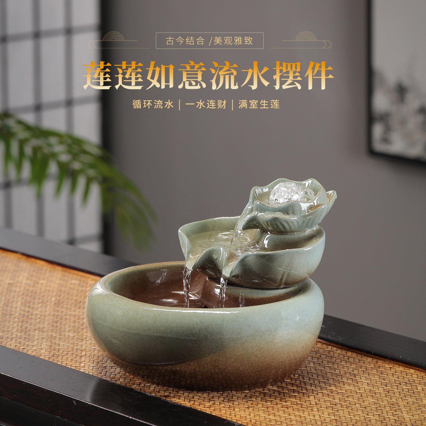 📚 流水摆件循环水招财客厅玄关办公室桌面小型风水轮转运球生财摆件
