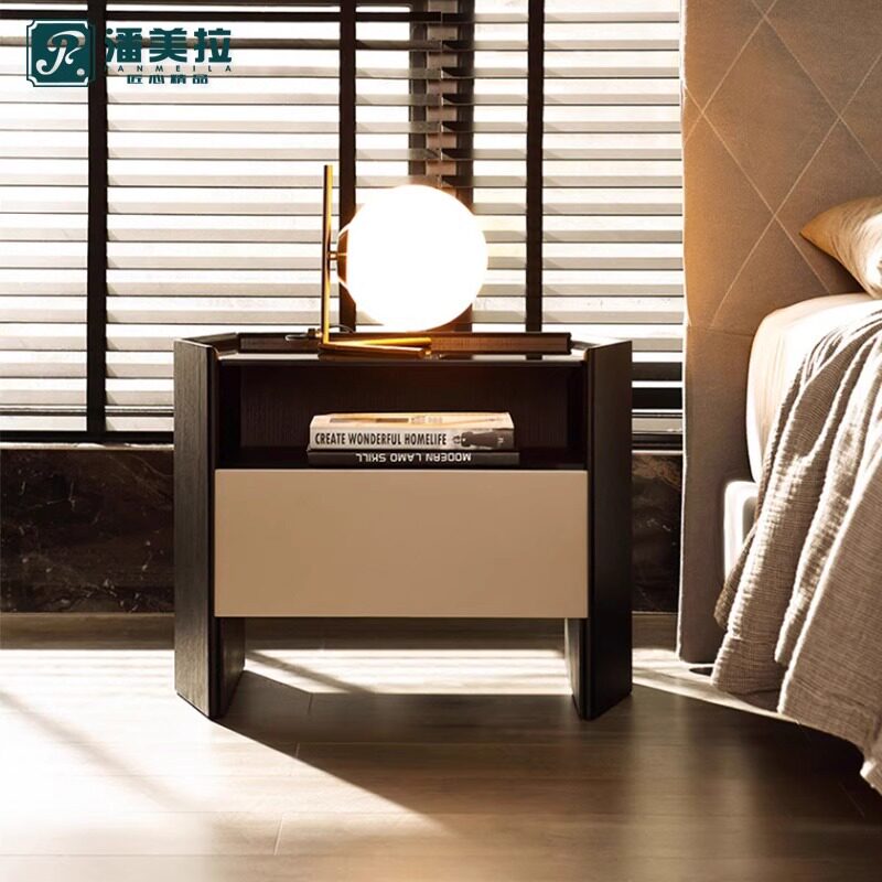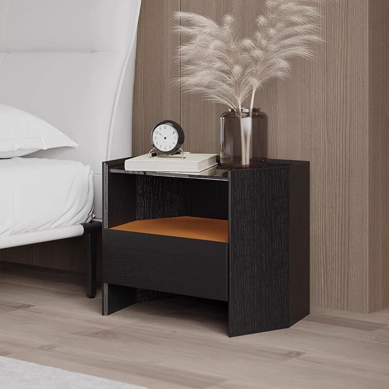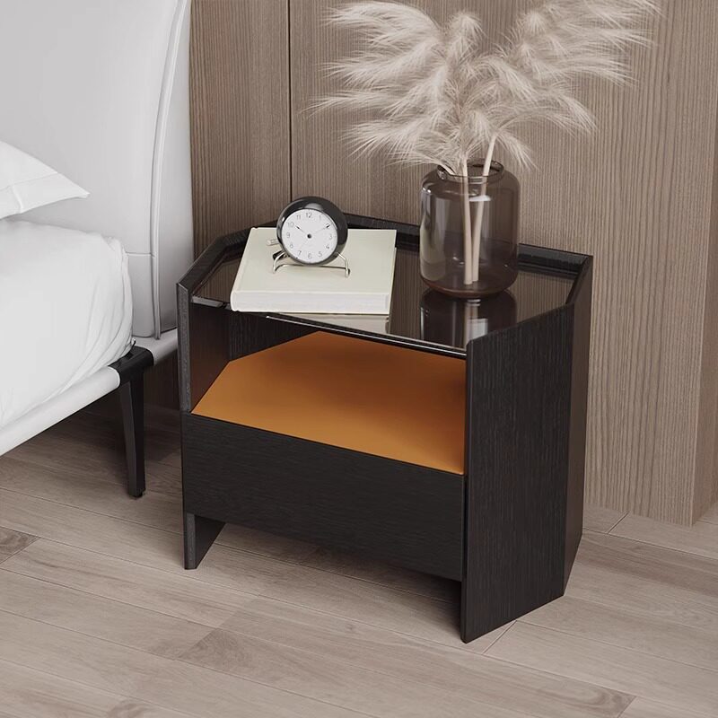 📚 意式极简六边形床头柜简约现代设计师百搭卧室黑橡木色玻璃床边柜