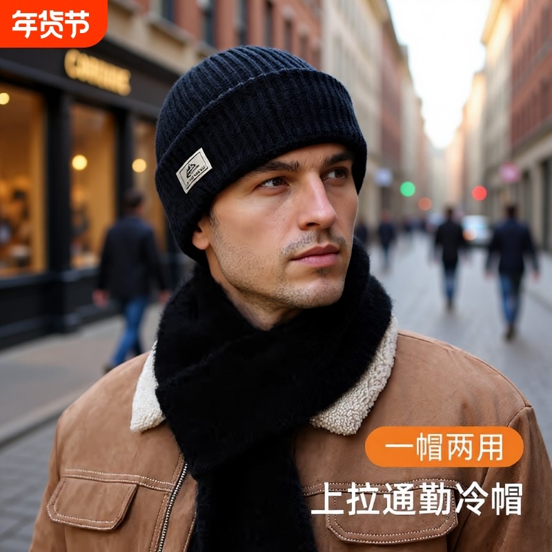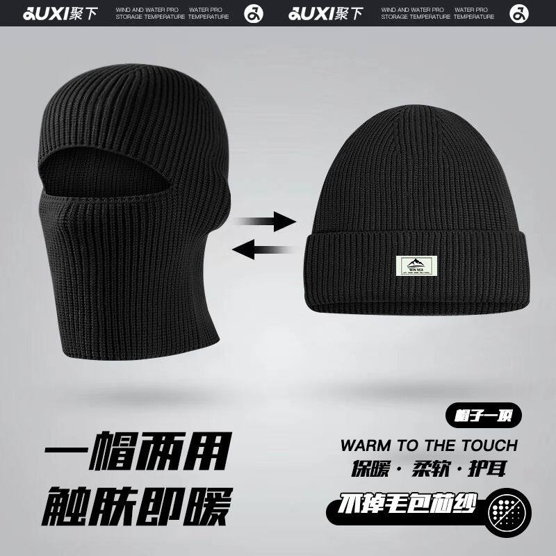 📚 帽子冬季男士款巴拉克拉法帽针织毛线帽防风防寒头套面罩保暖冷帽