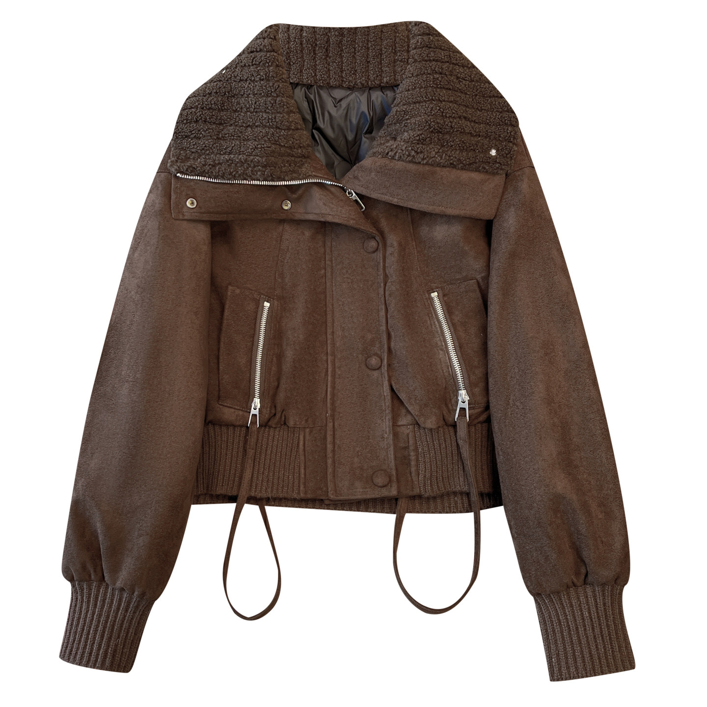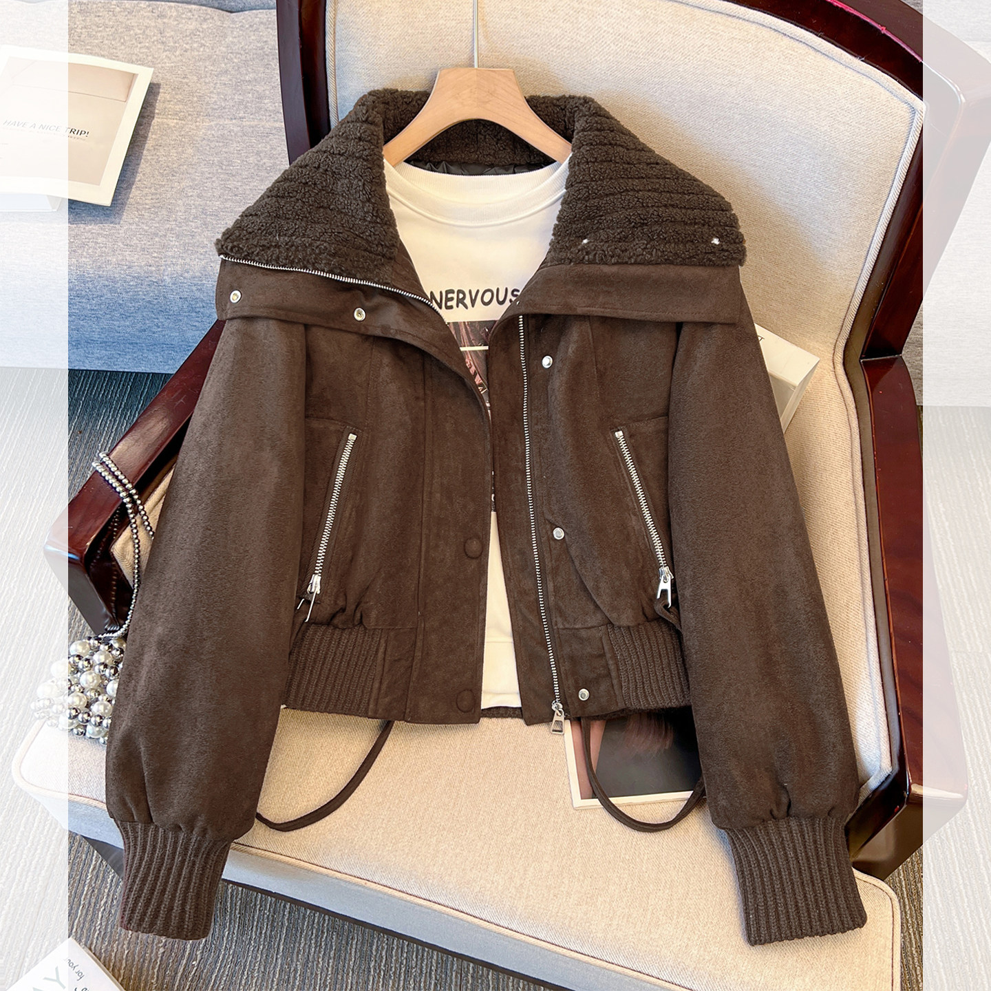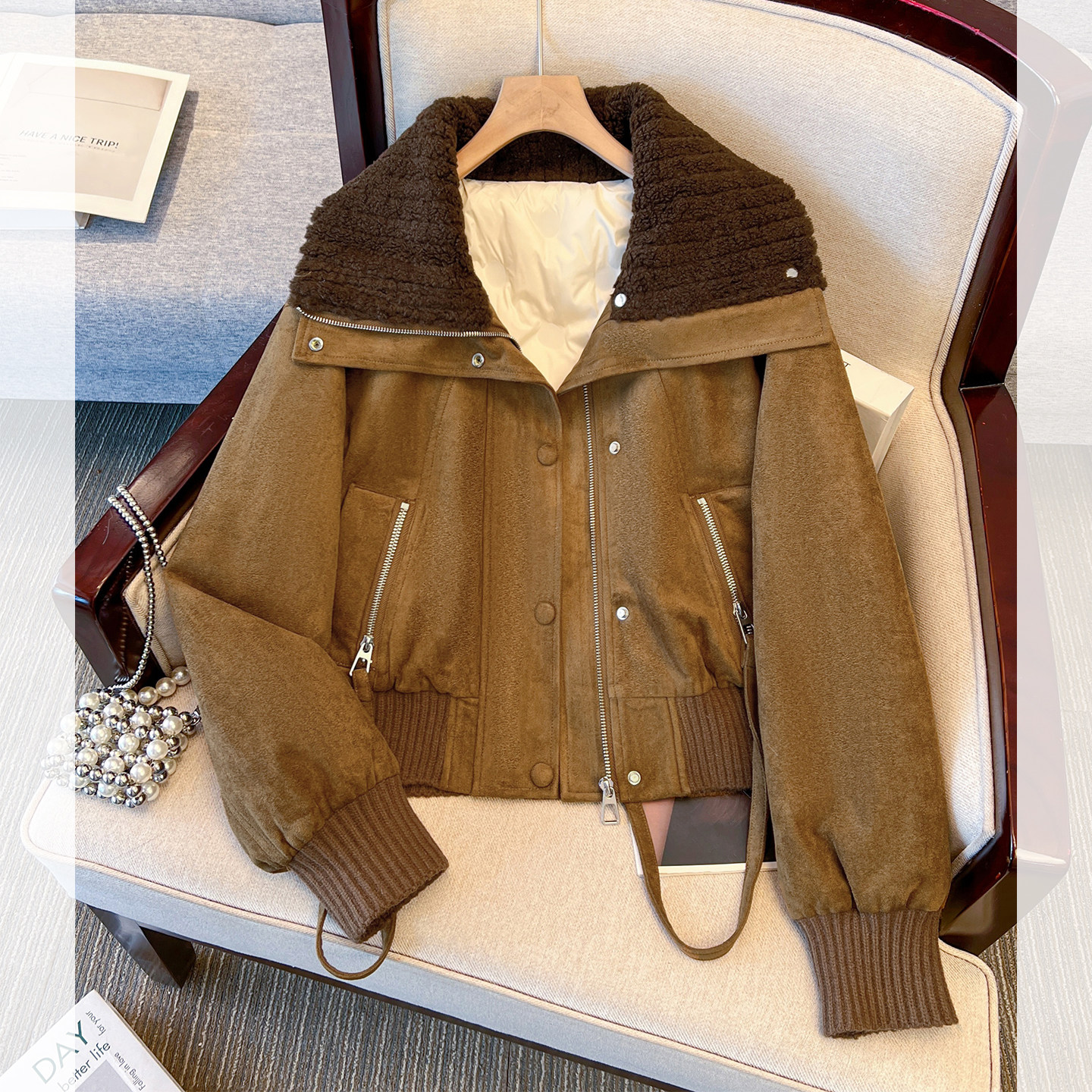 📚 爆款小个子高腰短款羊羔毛翻领麂皮羽绒服内胆厚外套女2025冬装新