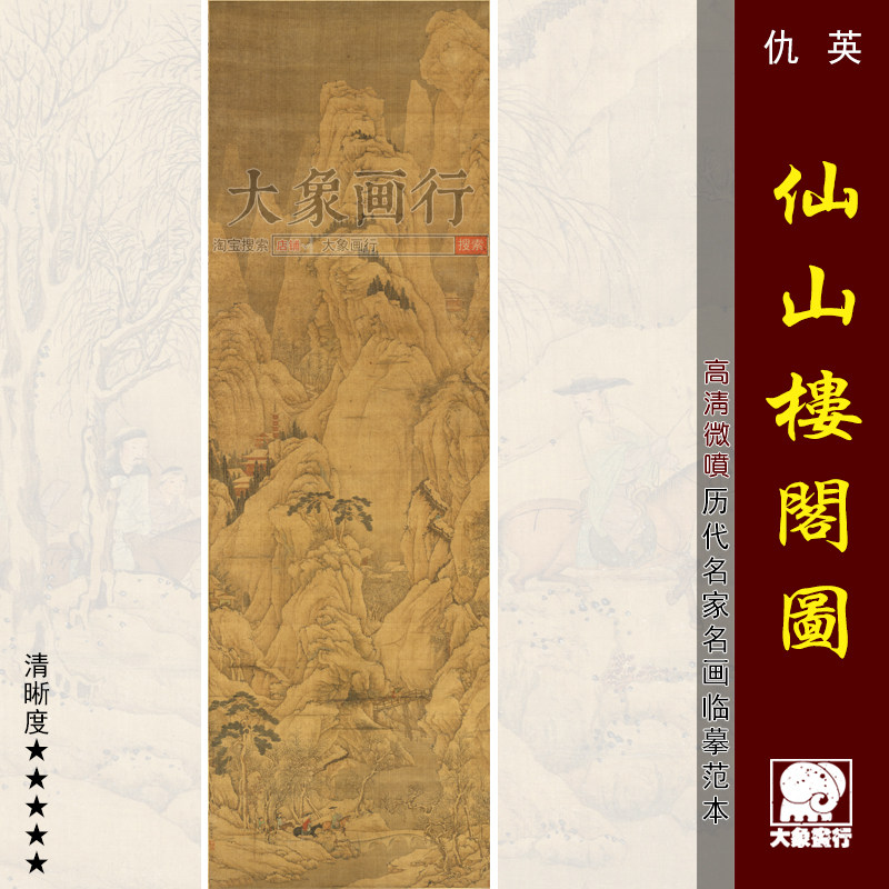 📚 仇英仙山楼阁图高清国画临摹彩色画稿雪景山水明清山水丝绢微喷画