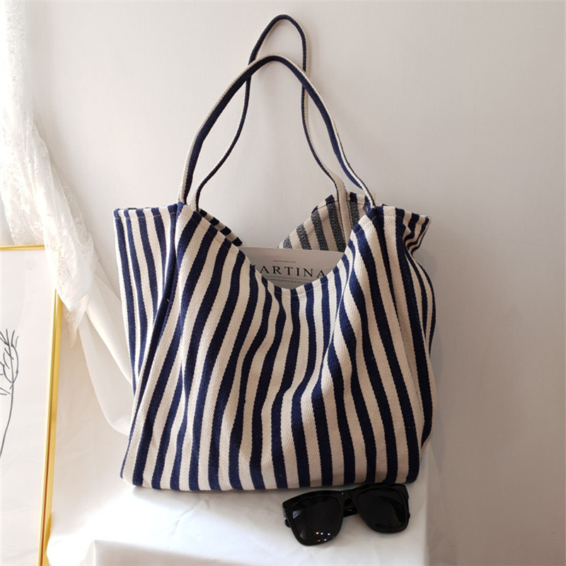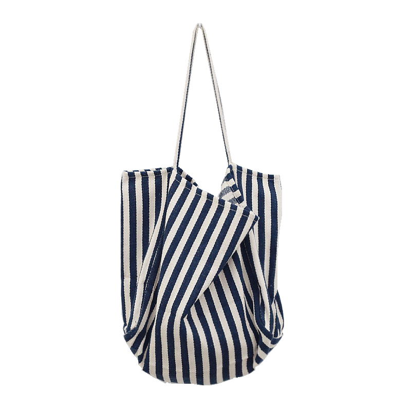 📚 帆布包女简约大容量条纹单肩包日韩chic慵懒风文艺小清新购物袋大