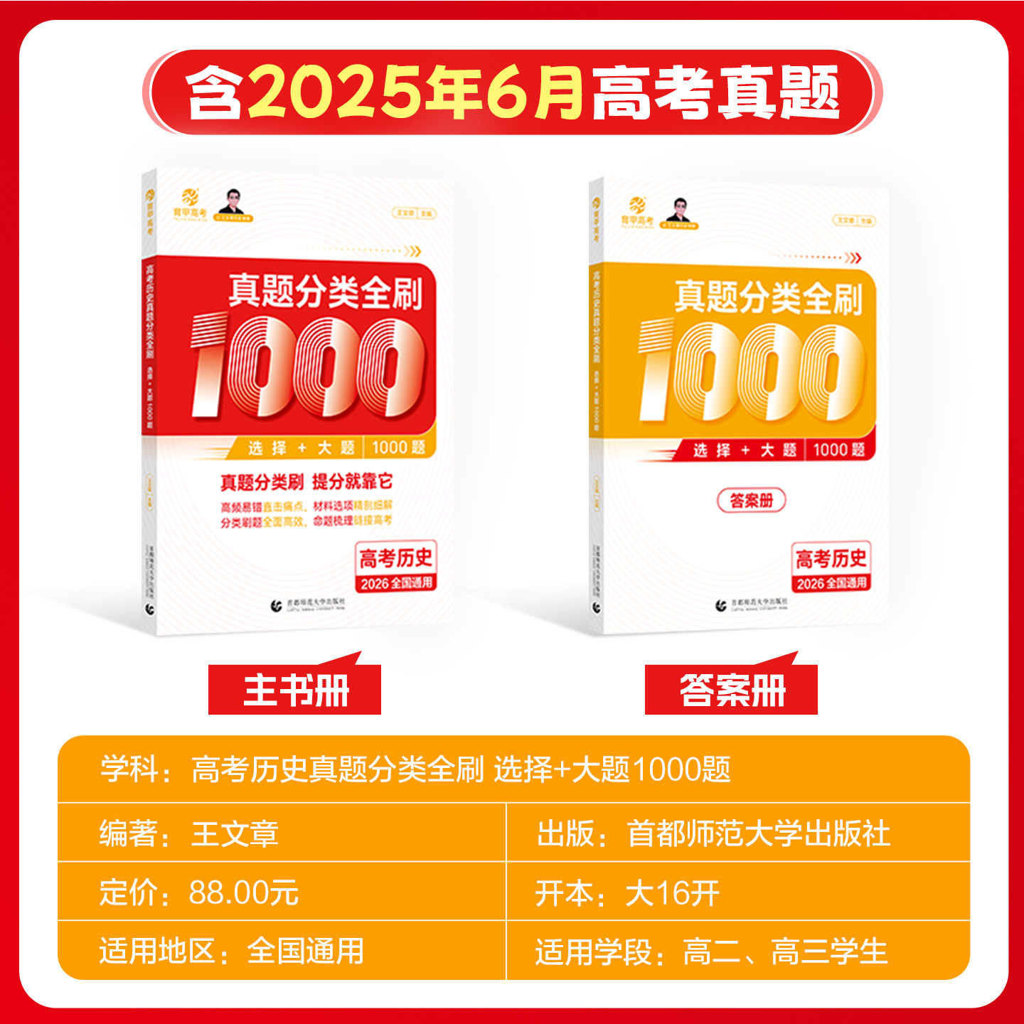 📚 育甲2026王文章高考历史真题分类全刷基础1000题历史高中教辅高考必刷题高考复习资料高中历史知识点专项训练新高考全国通用