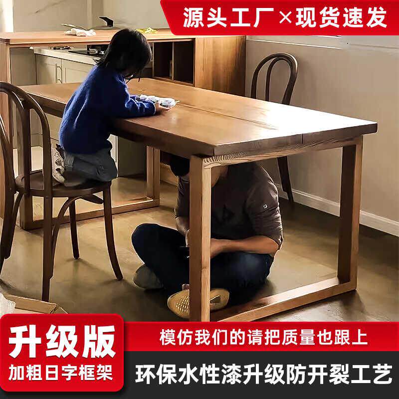 📚 餐桌比恩饭桌原木全实木工作台家用书桌白蜡木手工桌组合电脑桌