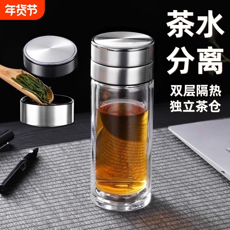 📚 男士茶水分离杯泡茶双层玻璃杯加厚隔热茶仓家用水杯子喝茶防爆