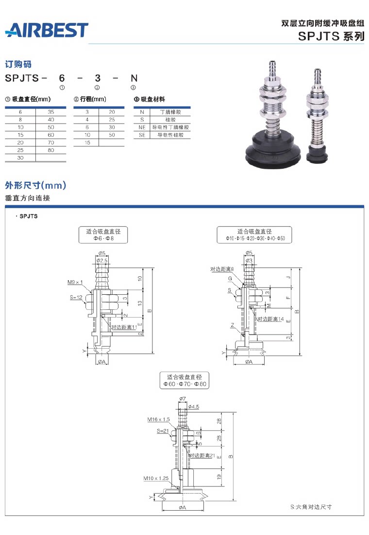 📚 AIRBEST阿尔贝斯风琴弹簧双层真空吸盘SPJTS-6/8/10垂直接口带缓