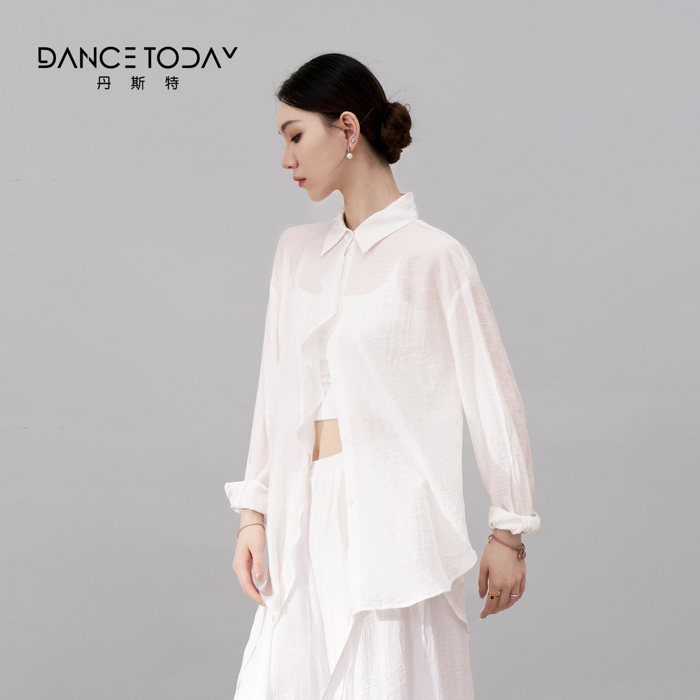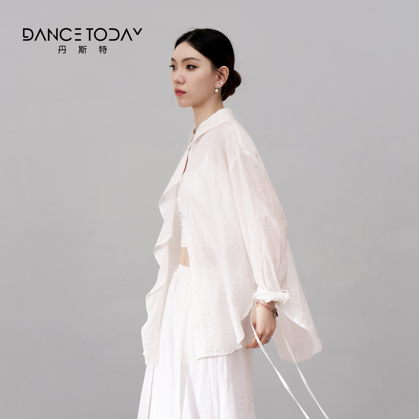 📚 dancetoday现代舞蹈练功服女白色飘逸衬衫套装宽松中国古典演出服