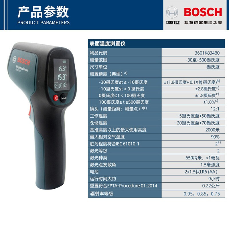 📚 博世测温仪GIS500红外线手持测温枪电子温度计高精度测温仪工业用