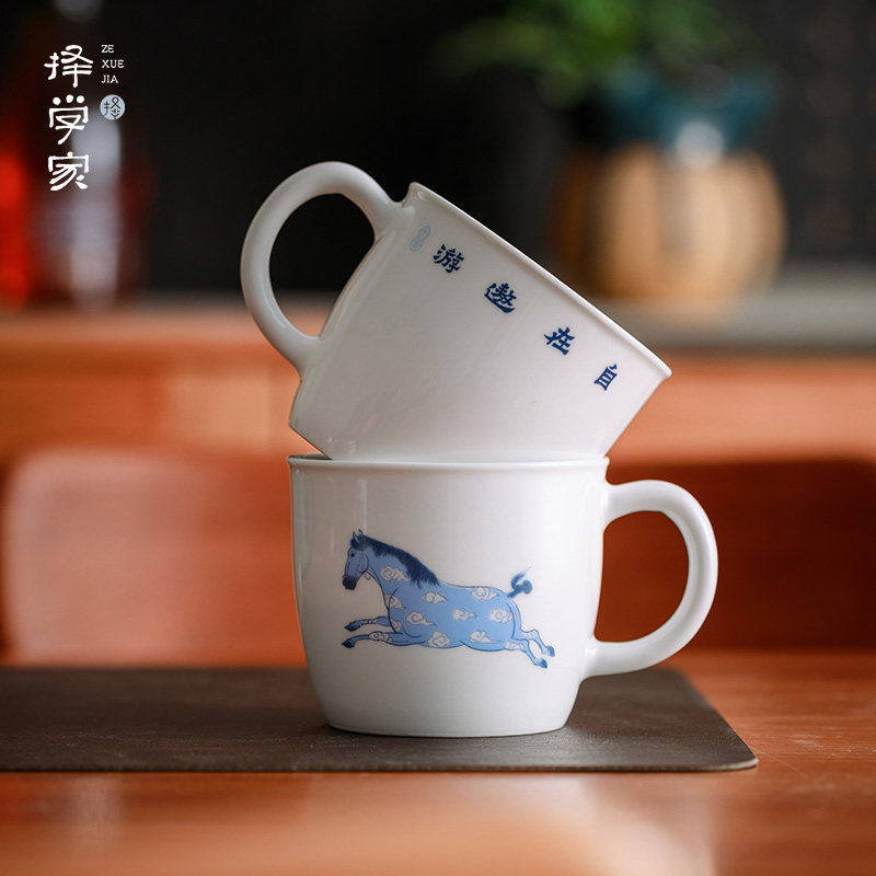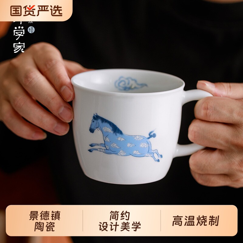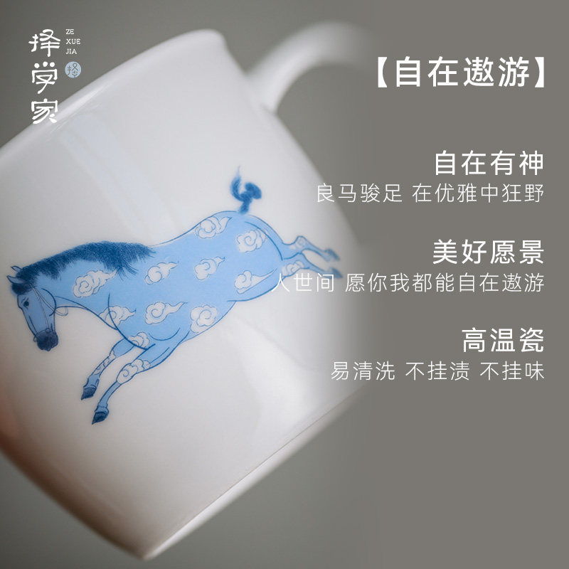 📚 景德镇陶瓷择学家自在遨游马克杯茶杯咖啡杯马年
