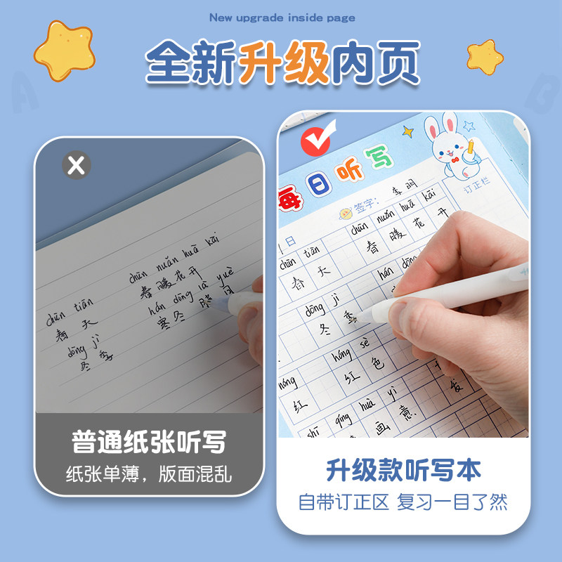 📚 每日听写本小学生语文一年级拼田本二年级上册三年级四五年级上册初中英文单词英语生字词语小学默写本作业本